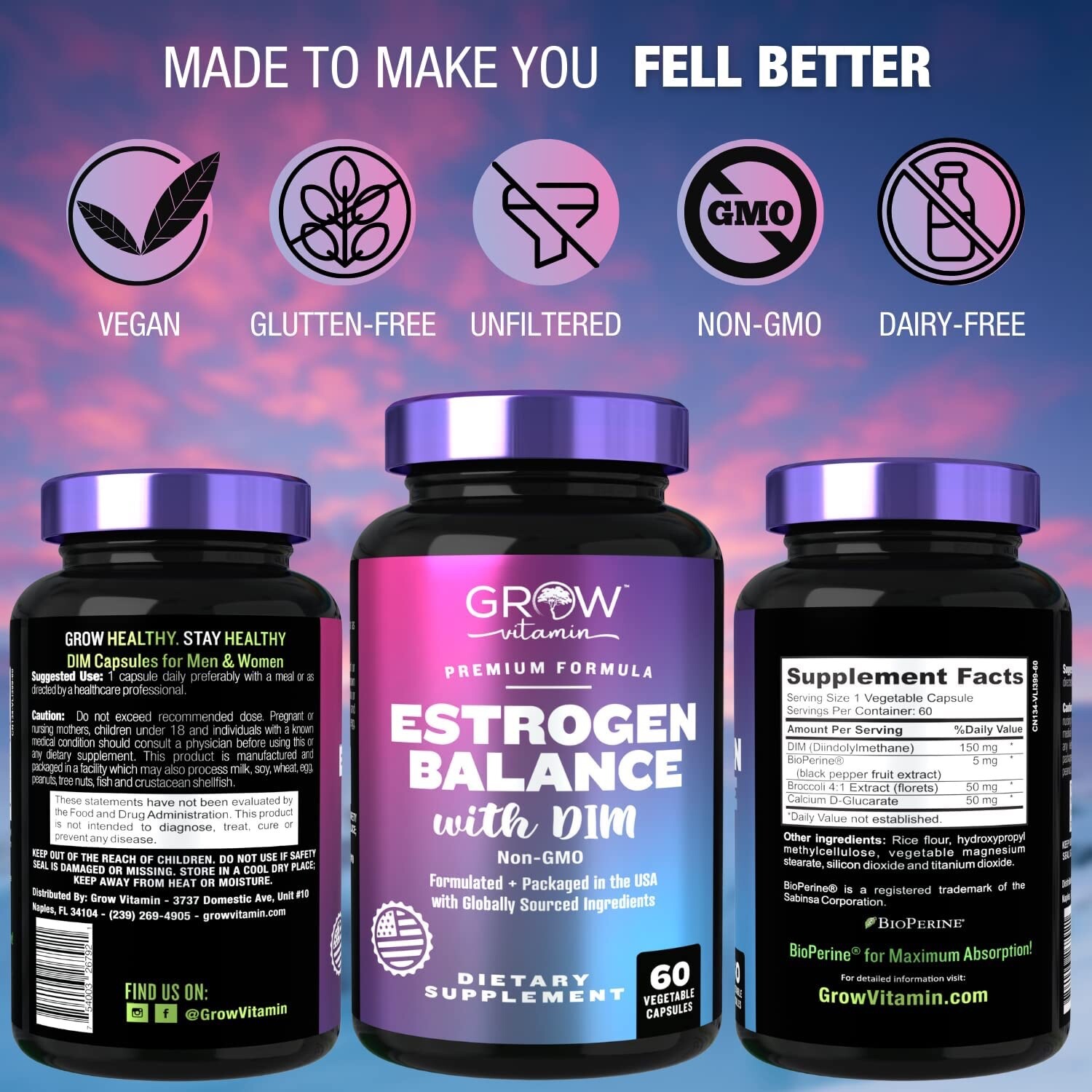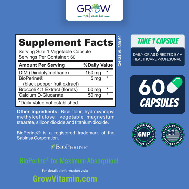 Ingredients: Vegetable Capsule, BioPerine, NuFlow, DIM