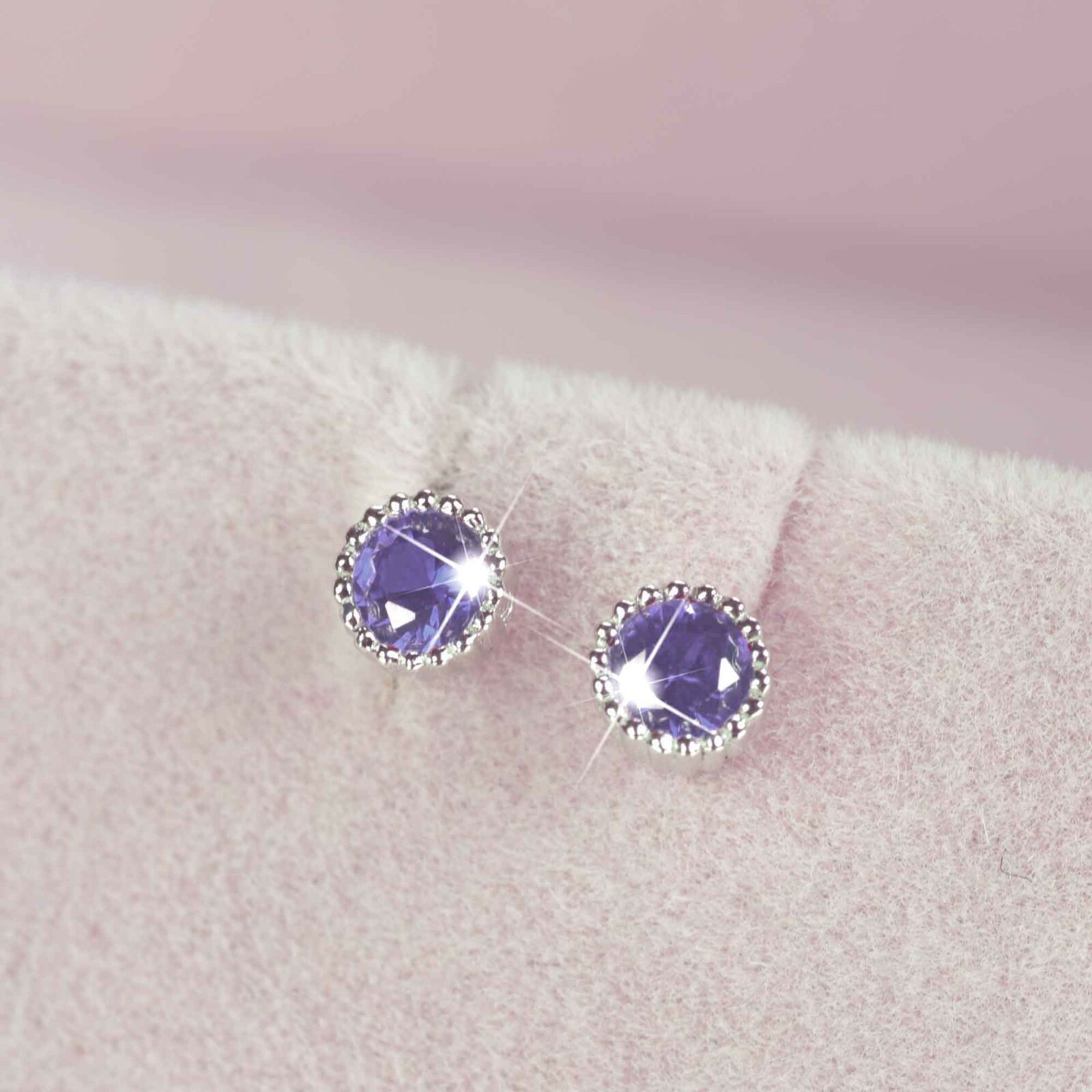 925 silver purple simulated diamond stud Screw back baby kids ball safe earrings