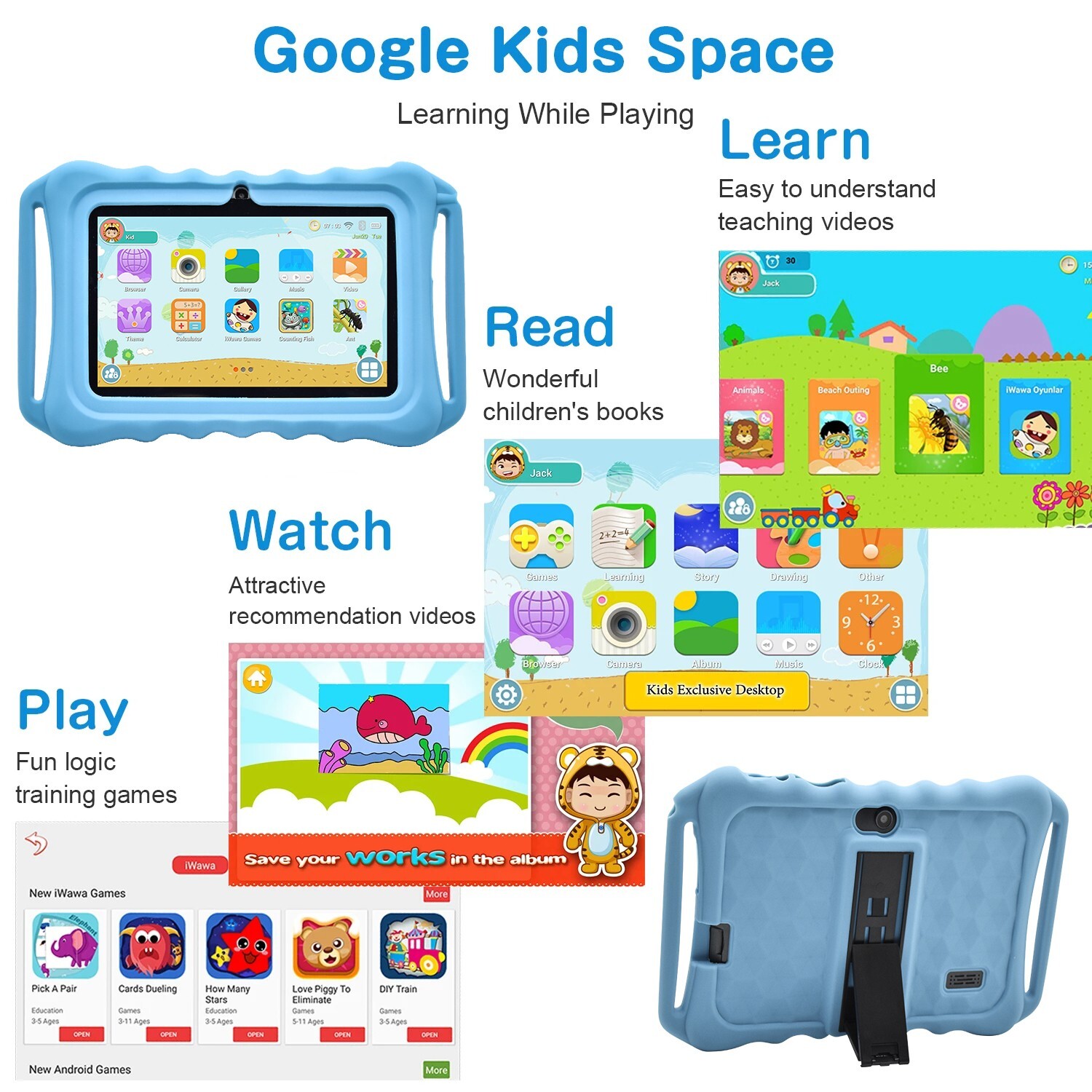 как выглядит 64GB 7" Android 9 Tablet PC For Kids Quad-Core Dual Cameras WiFi Bundle Case фото