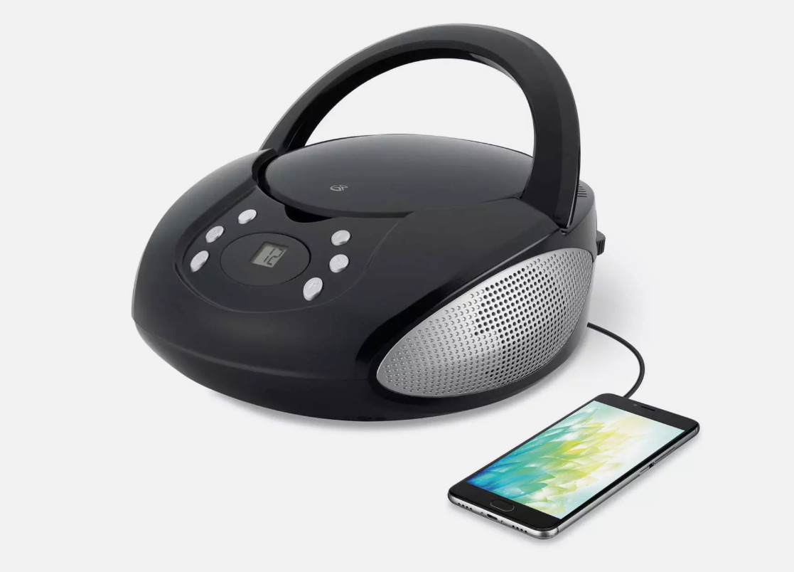 GPX CD Player Boombox with AM/FM Radio, BC112B, Black Easy Carry handle LED