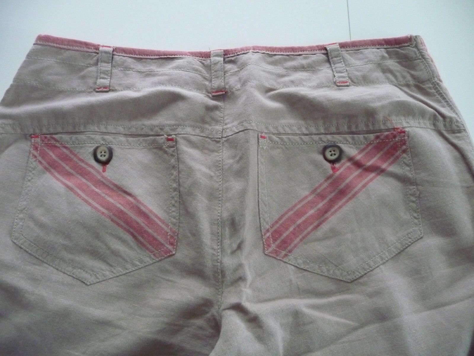 как выглядит VINTAGE ITALIAN LINEN COTTON BLEND VERY WIDE LEG BEIGE AND PINK PANTS SIZE12 фото