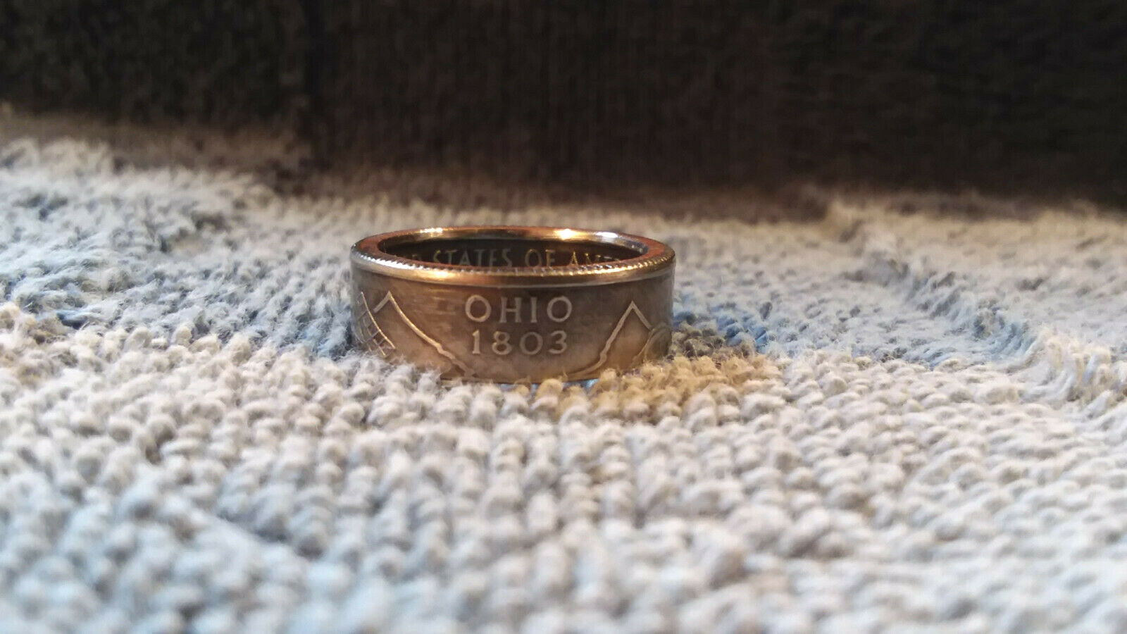 Ohio Handcrafted Washington Quarters coin ring, size 6 2002 2