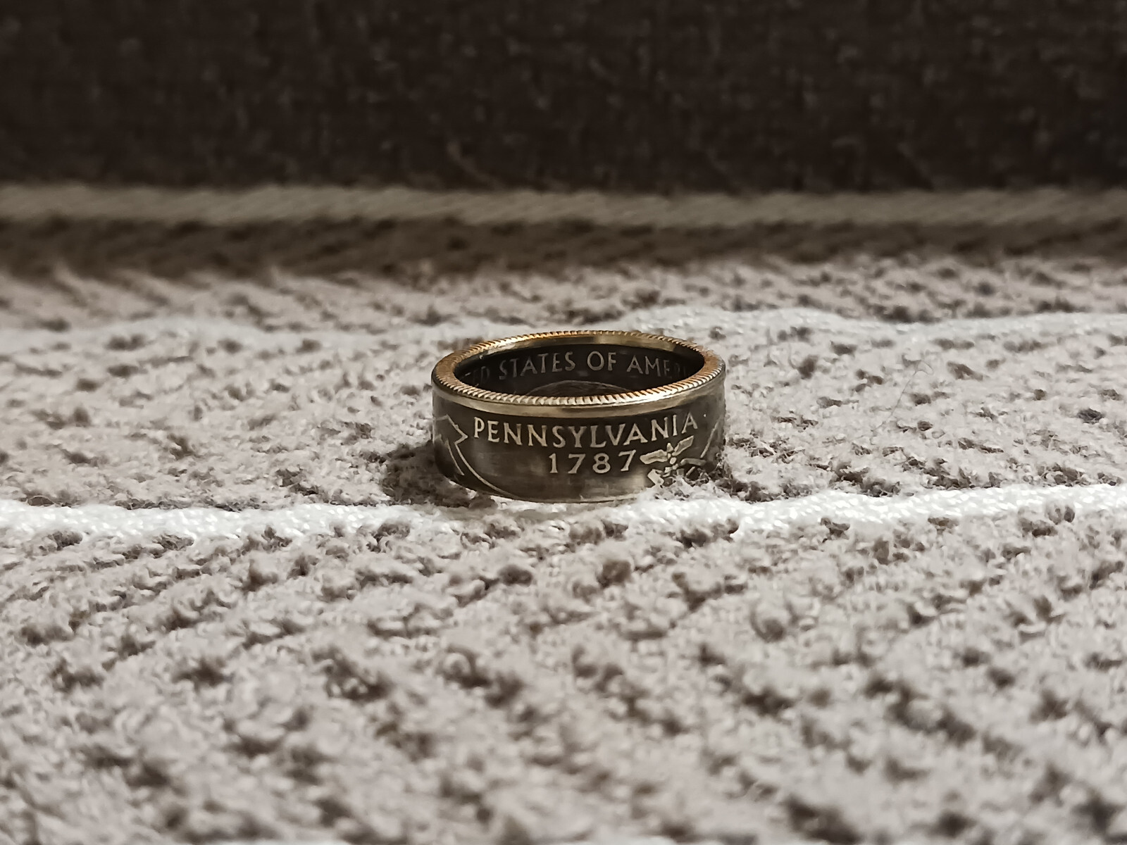 Pennsylvania Handcrafted Washington Quarters coin ring, size 7 1999