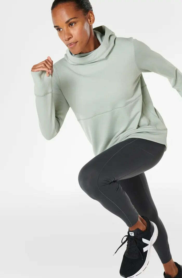 как выглядит Sweaty Betty Galvanise Running Hoody Thumbholes Breathable Thermal Gray Green XS фото
