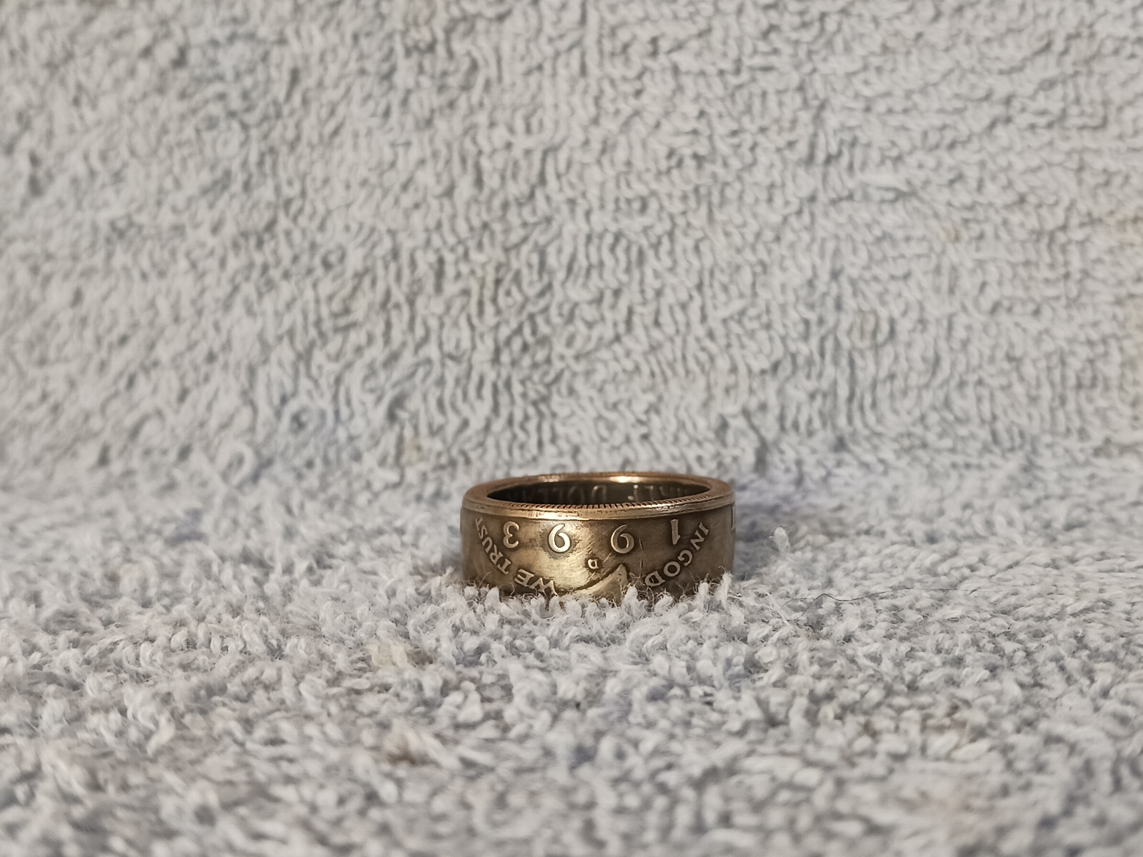 1993 Kennedy Half Dollars size 10 -1/2 coin ring handmade mixed metals