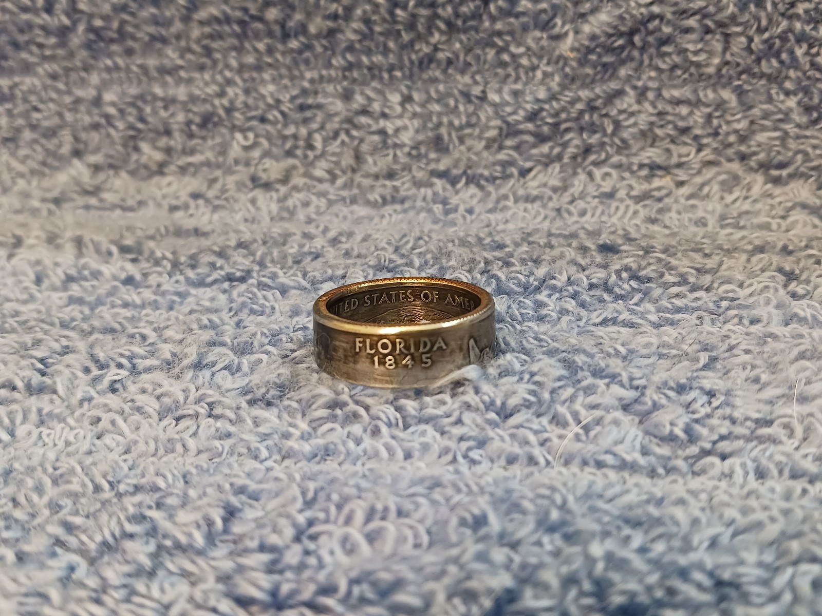 Florida Handcrafted Washington Quarters coin ring, size 7 -1/2 2004
