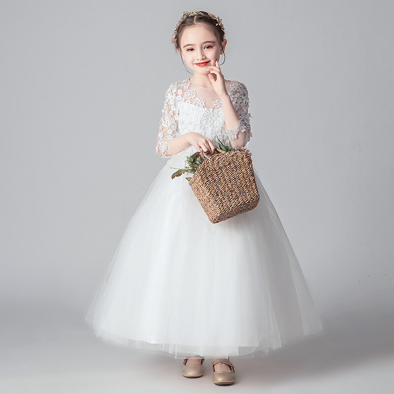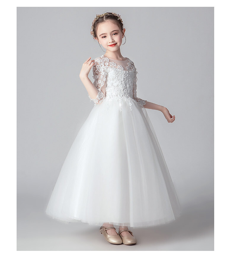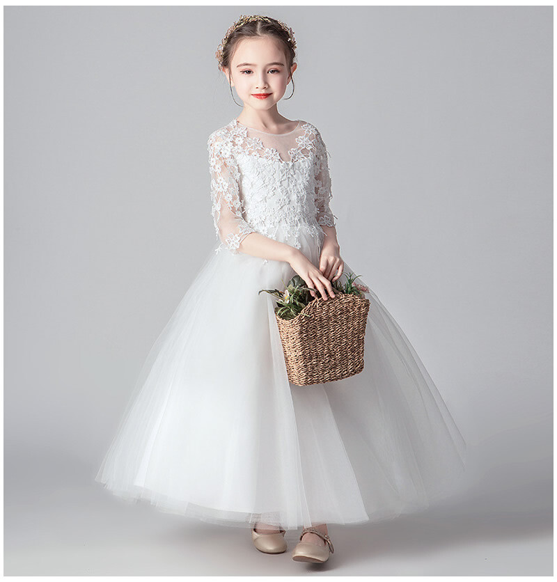 как выглядит Illusion Neck Lace Tulle Tutu Short/ Long Gown Dress Evening Flower Girl Wedding фото