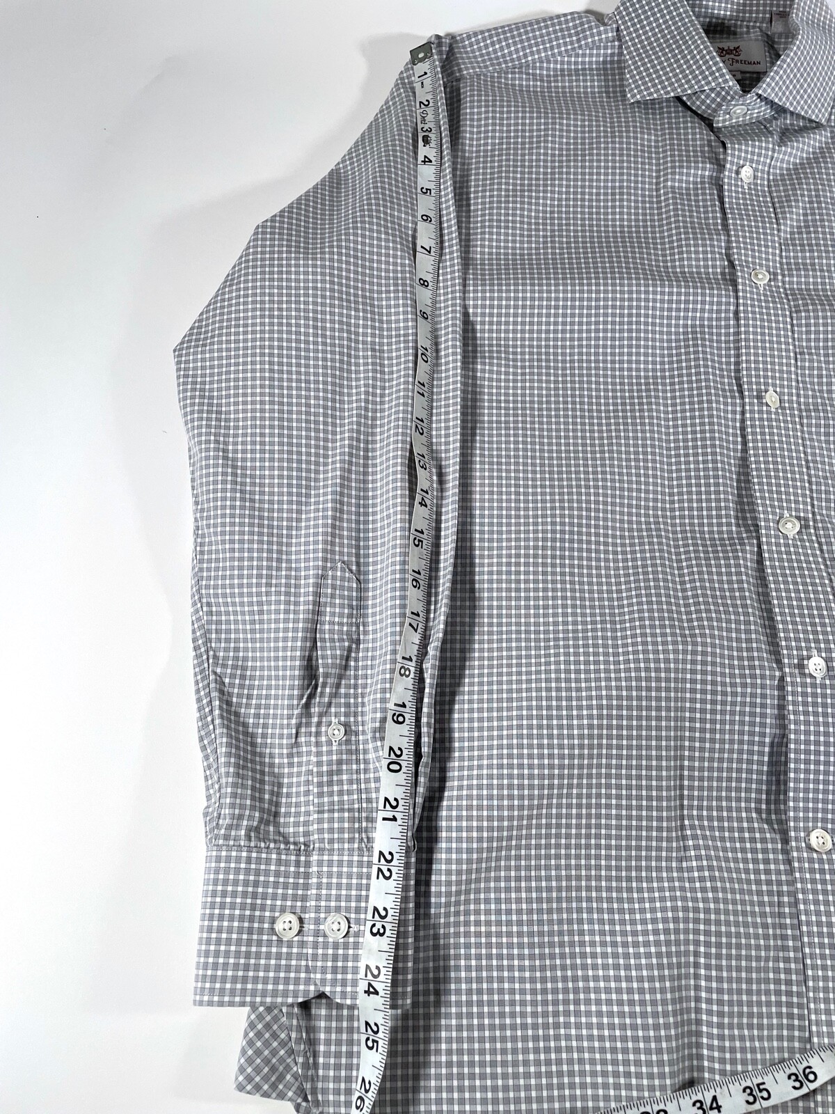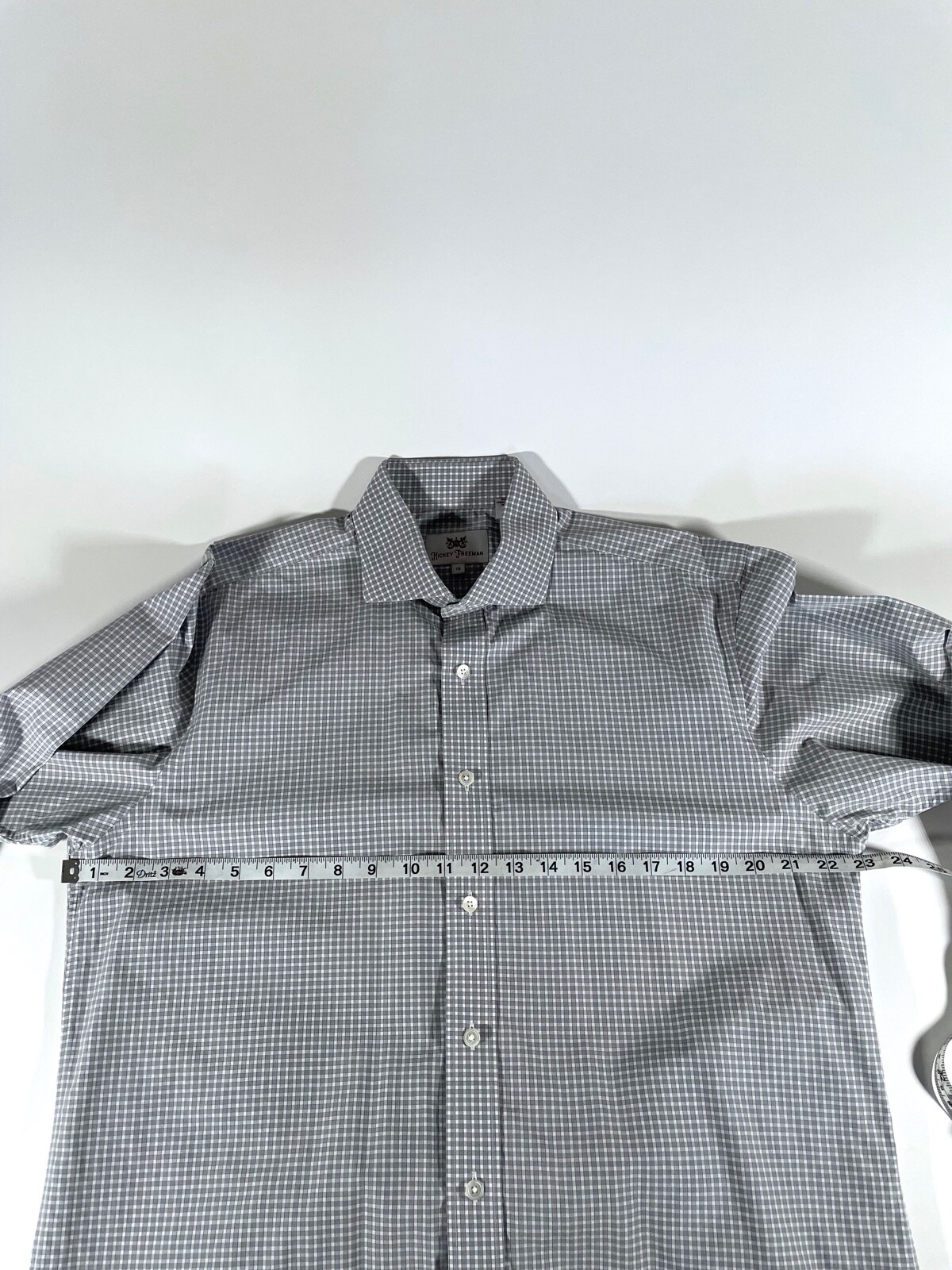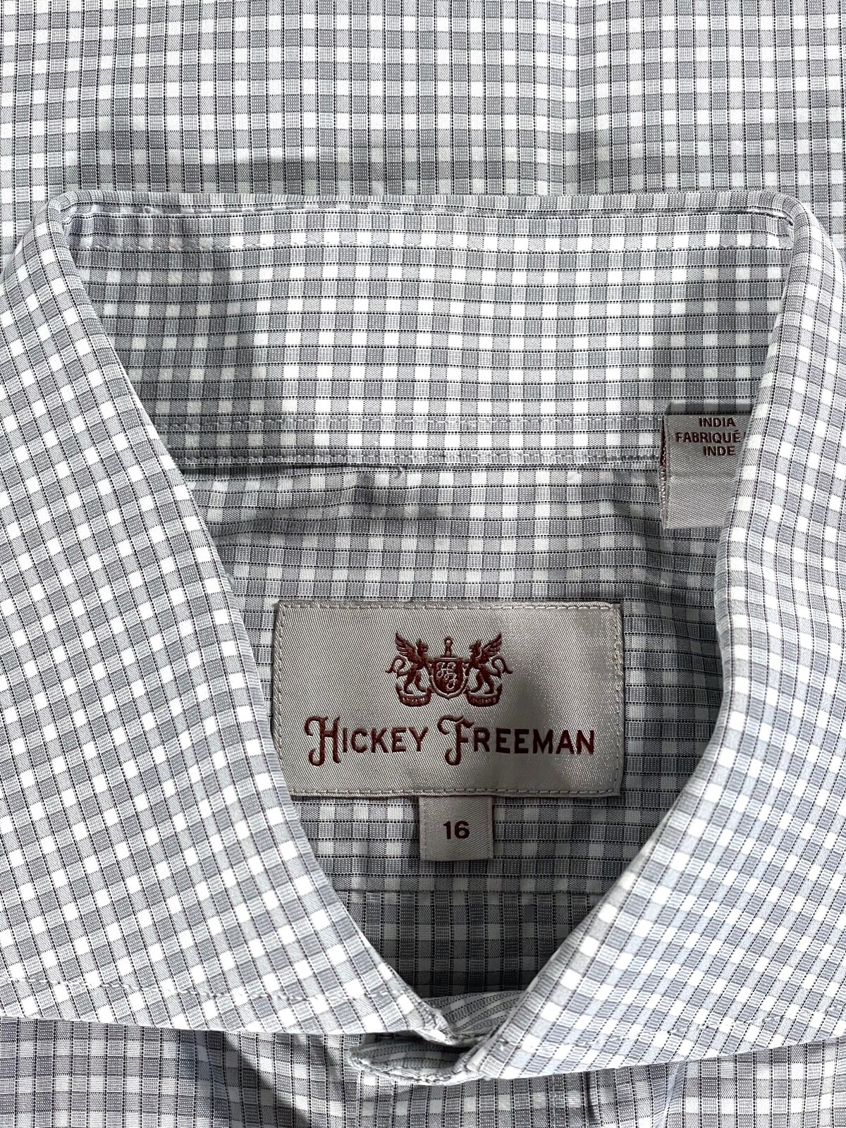 как выглядит Hickey Freeman Gray Gingham Check Spread Collar Dress Shirt Mens Sz 16 EUC фото