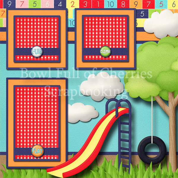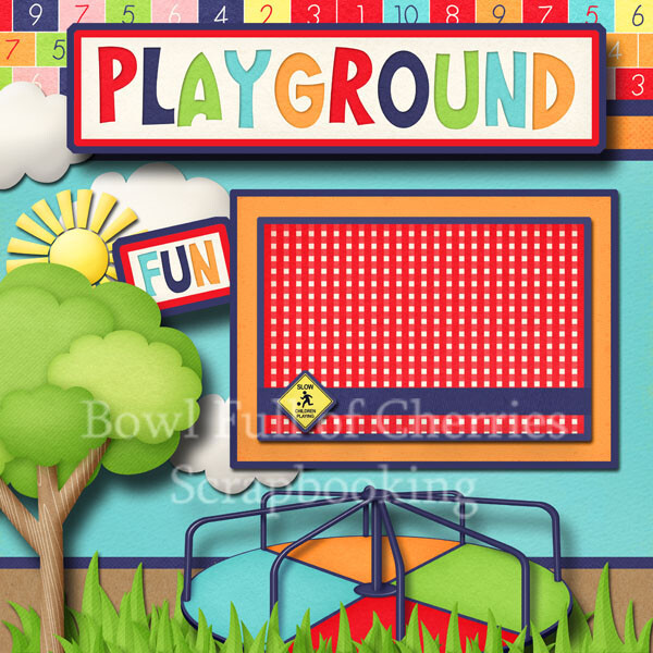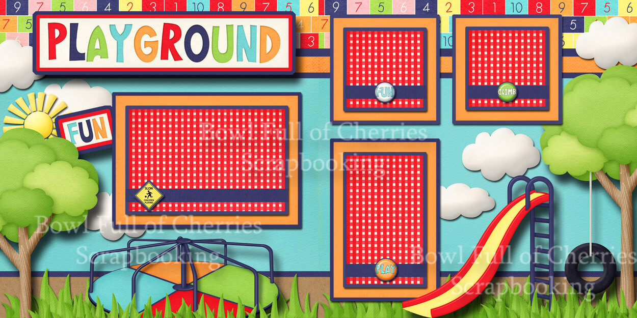 PLAYGROUND PARK play boy girl 2 premade scrapbook pages 12X12 prints CHERRY 0301