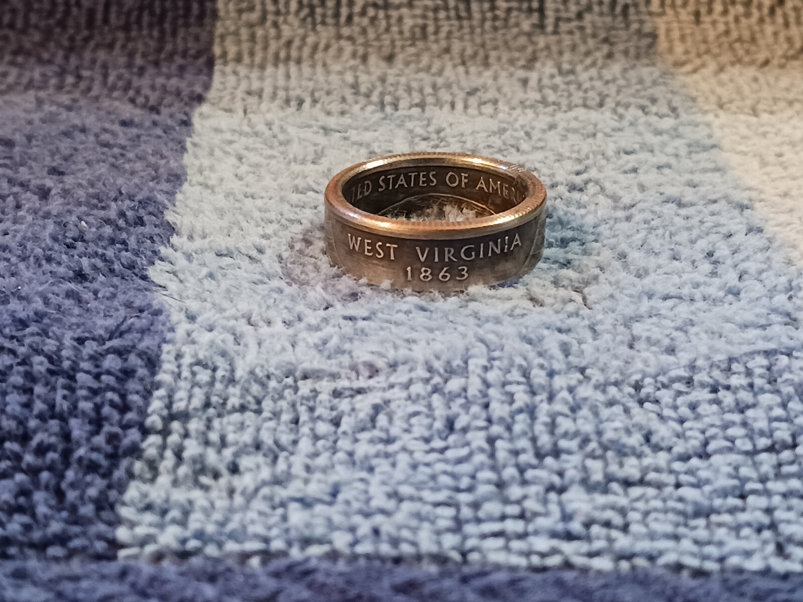 West Virginia Handcrafted Washington Quarters coin ring, size 6 2005
