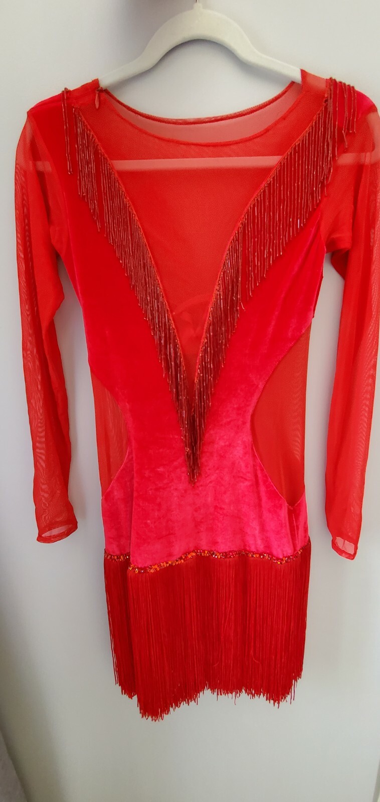 как выглядит RED Ballroom Latin Salsa dance costume dress fringe фото