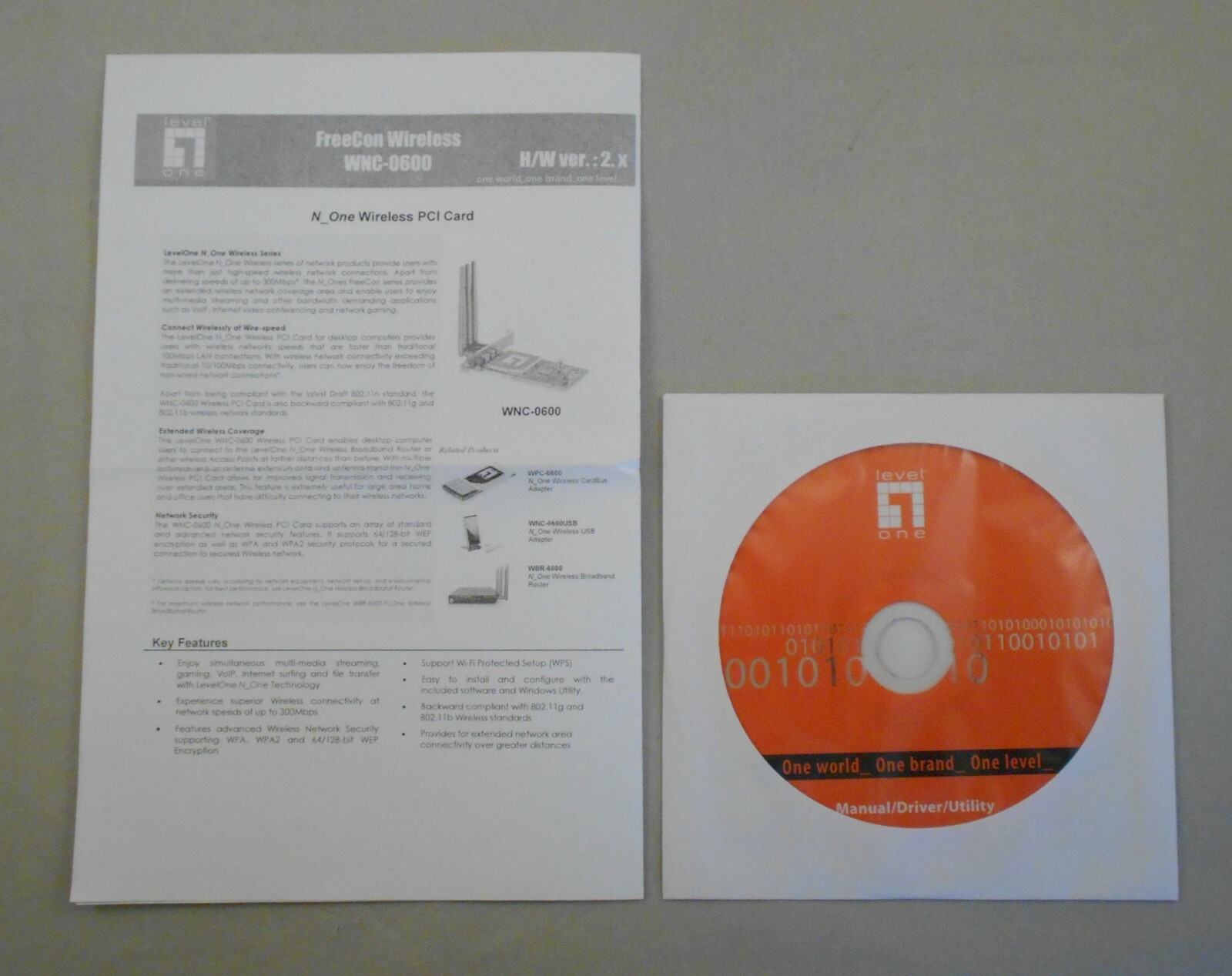 LevelOne WNC-0600 300Mbps N One Wireless PCI Card with Extension Cable