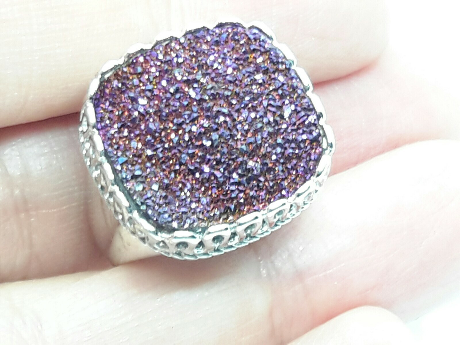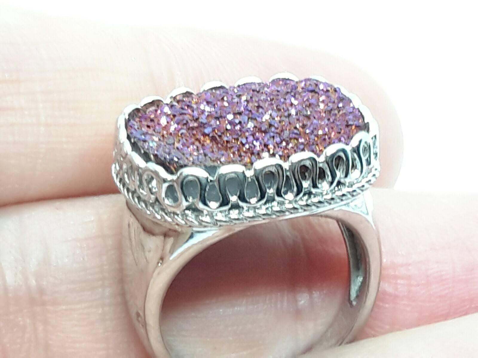как выглядит Vintage KN Sterling Silver Druzy Stone Ring 925 фото