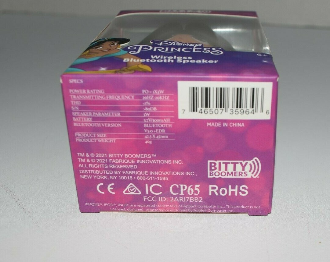 BITTY BOOMERS - DISNEY PRINCESS - JASMINE WIRELESS BLUETOOTH SPEAKER NIB