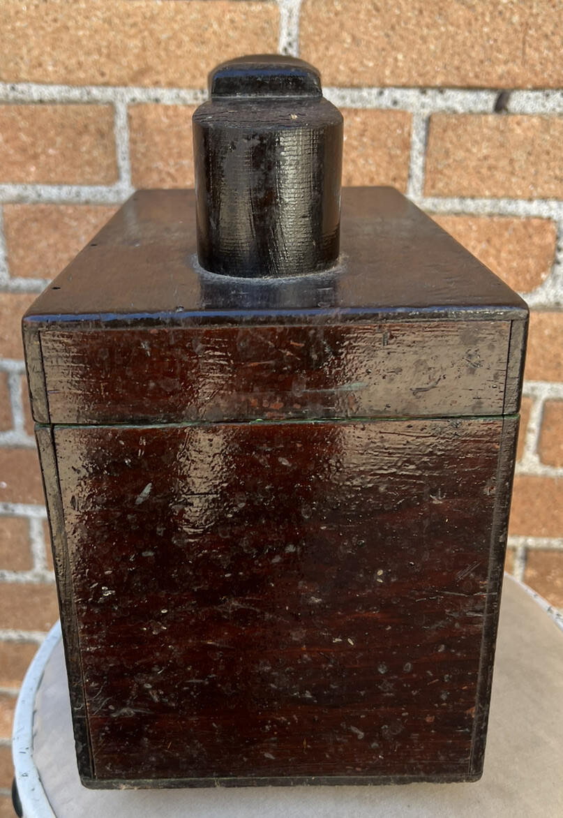 • Vintage Folk Art Shoe Shine Box Sculptural Green Interior