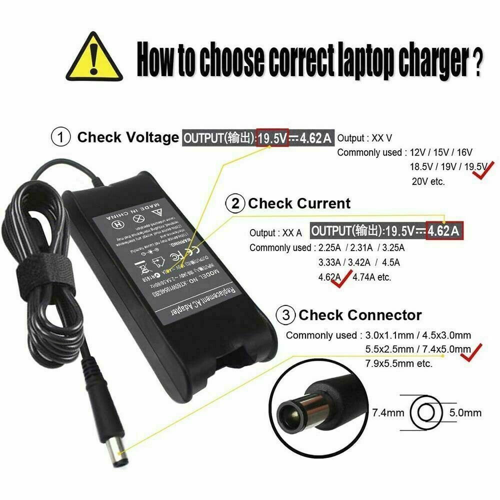 Power Cord Charger for Dell Inspiron 15 14-5000 13-7000 13-5000 17-7000 11-3000