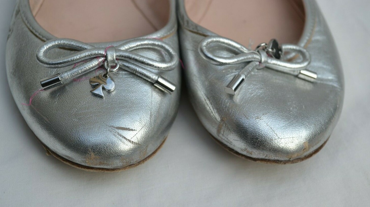 как выглядит KATE SPADE NEW YORK AUTH 299 Women Silver Leather Willa Ballet Flat Shoe Size 9 фото