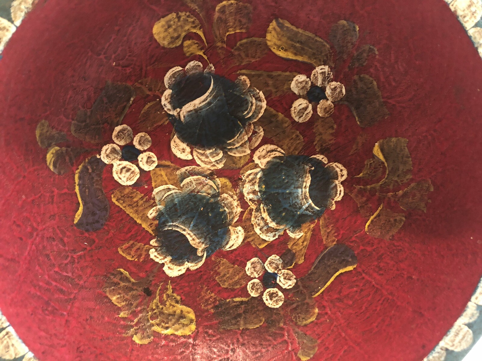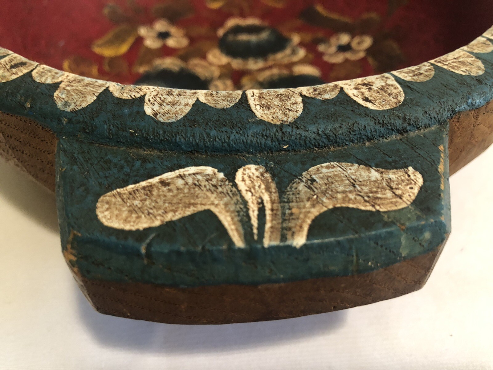как выглядит Painted Flowers Decorative Carved Wooden Bowl W/Handles фото