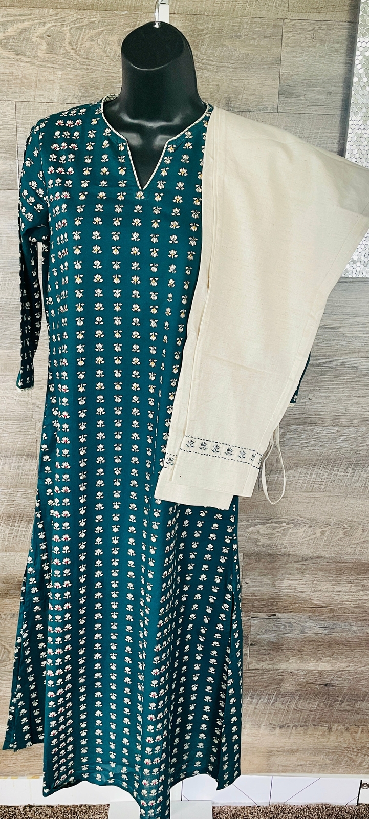 Pure Muslin Cotton Sequence Thread Work Kurti and Pant