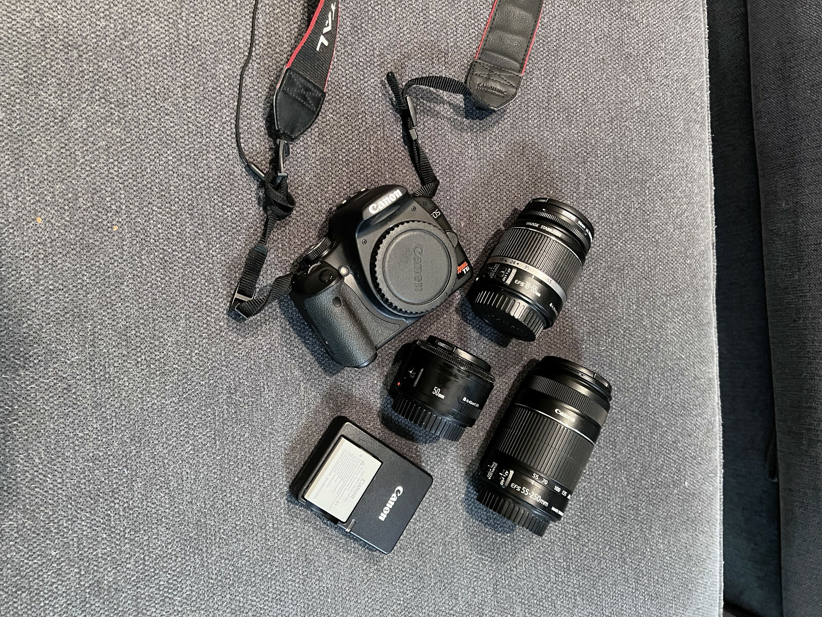 как выглядит Canon EOS Rebel T1i in Pristine condition. Three lenses 55-250mm, 18-55mm 50mm фото