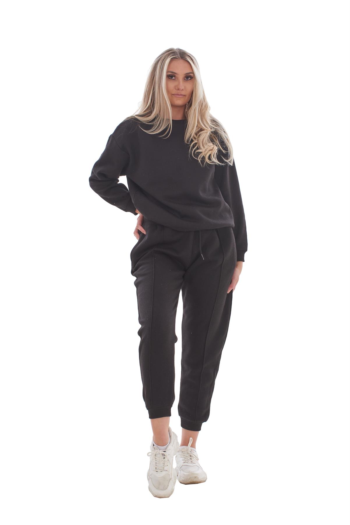 Ladies Tracksuit Set Round Neck Sweatshirt Plaid Joggers Activewear S to XL