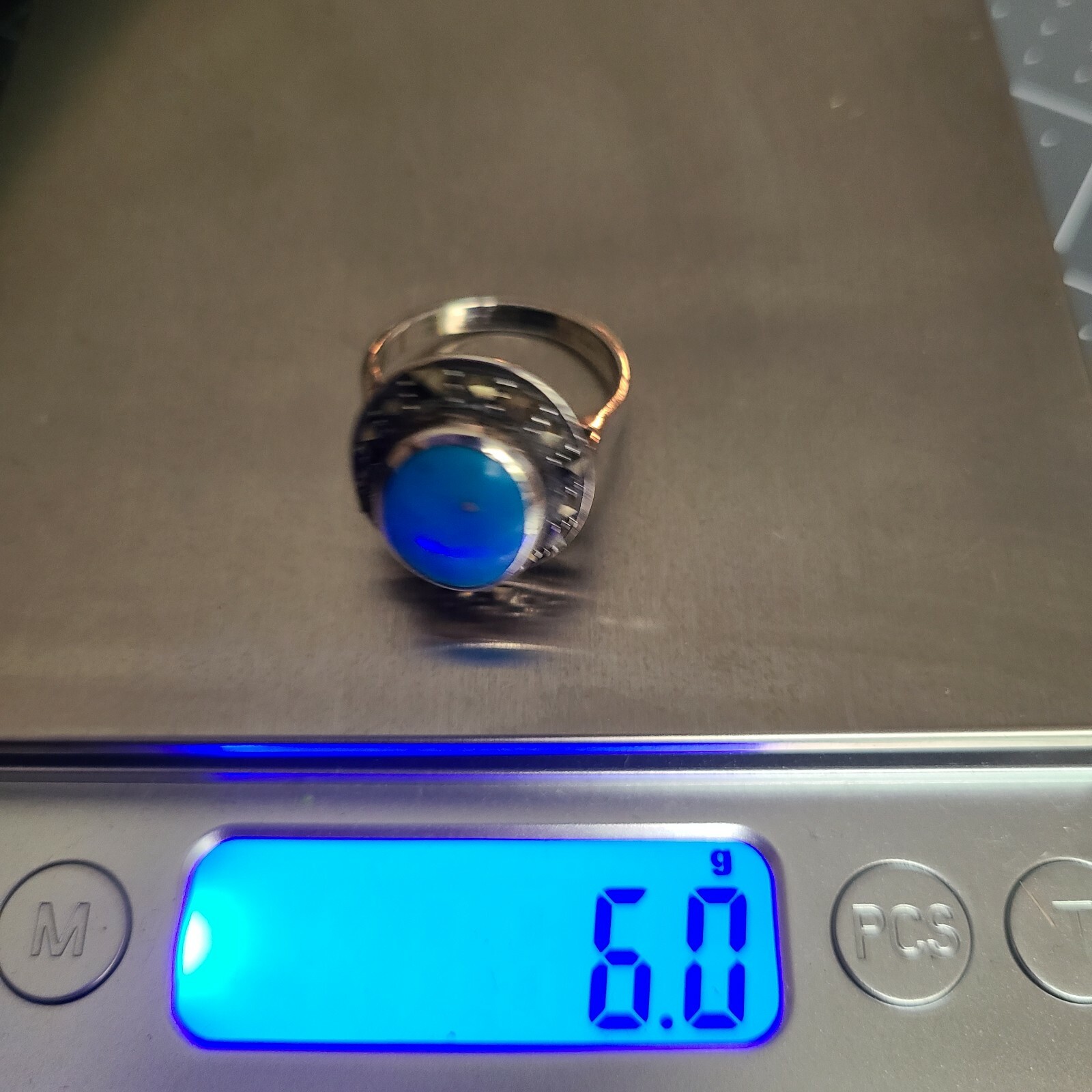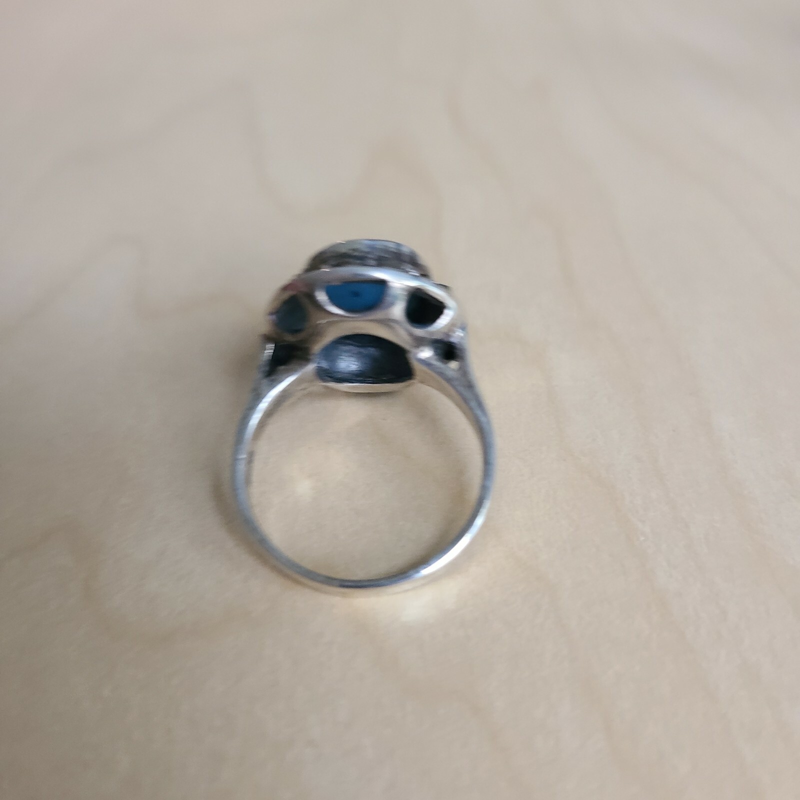 как выглядит VINTAGE STERLING SILVER 925 BLUE STONE AND MARCASITES RING SIZE 7.75 фото