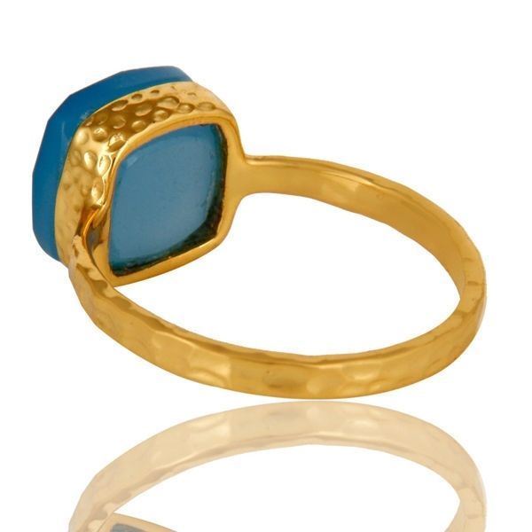 как выглядит Natural Blue Chalcedony Gemstone Ring 14KGold Plated 925 Sterling Silver Jewelry фото
