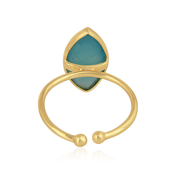 как выглядит Aqua Chalcedony Gemstone 925 Silver Gold Plated Designer Adjustable Rings фото