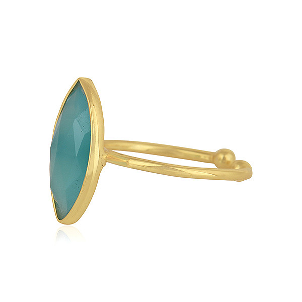 Aqua Chalcedony Gemstone 925 Silver Gold Plated Designer Adjustable Rings