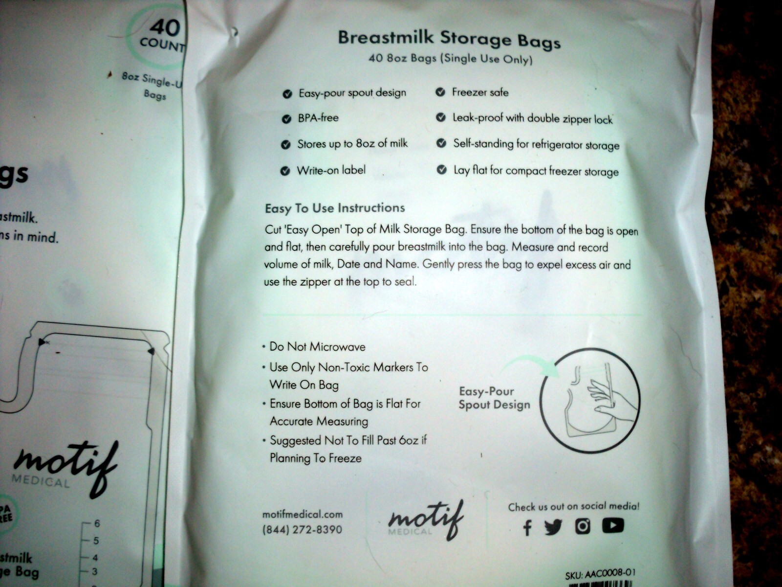 Lot of 2 Motif Breastmilk Storage Bags 40 Ct 8 oz BPA Free -Easy Pour Spout