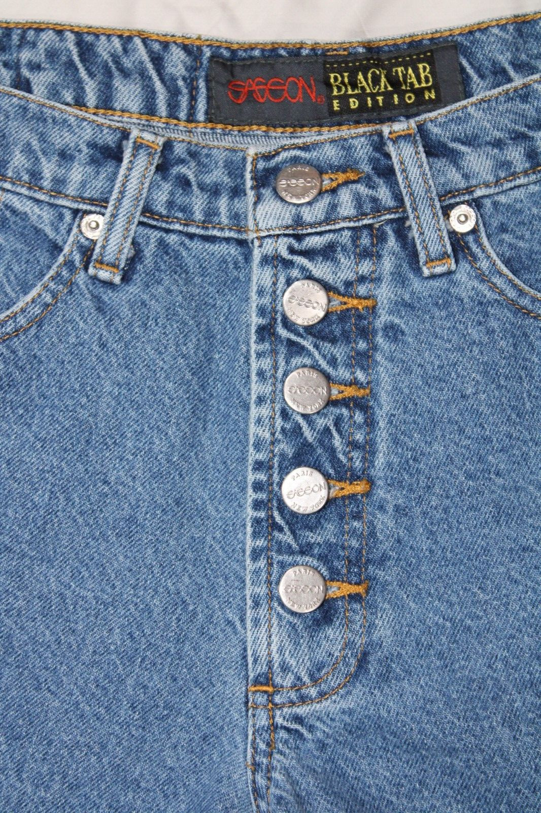 как выглядит Vtg Sasson Exposed Button Fly Jean Denim HighWaist Shorts Womens Size 9 80s Y2K фото