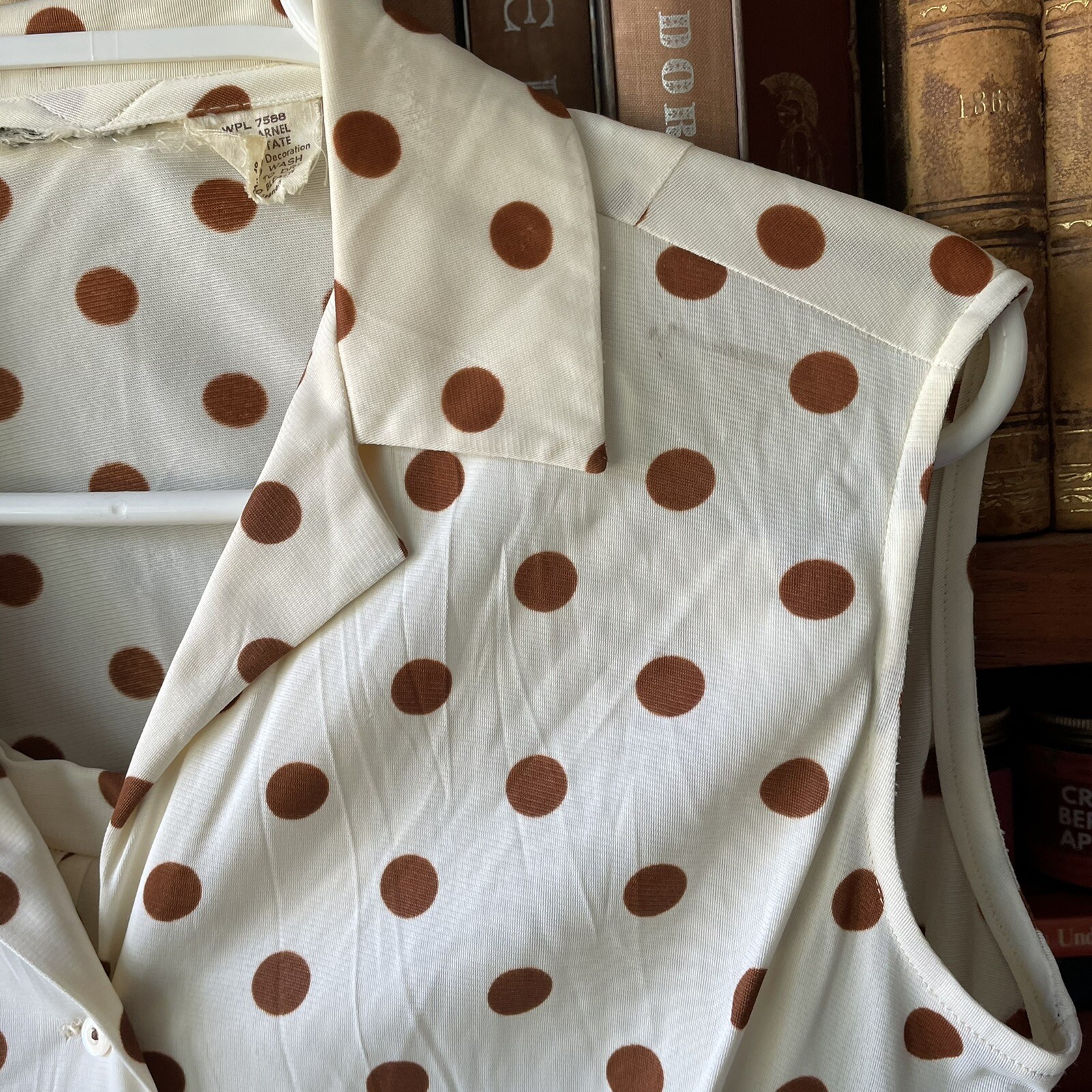 как выглядит Vintage polka dot skirt set brown cream 70s фото