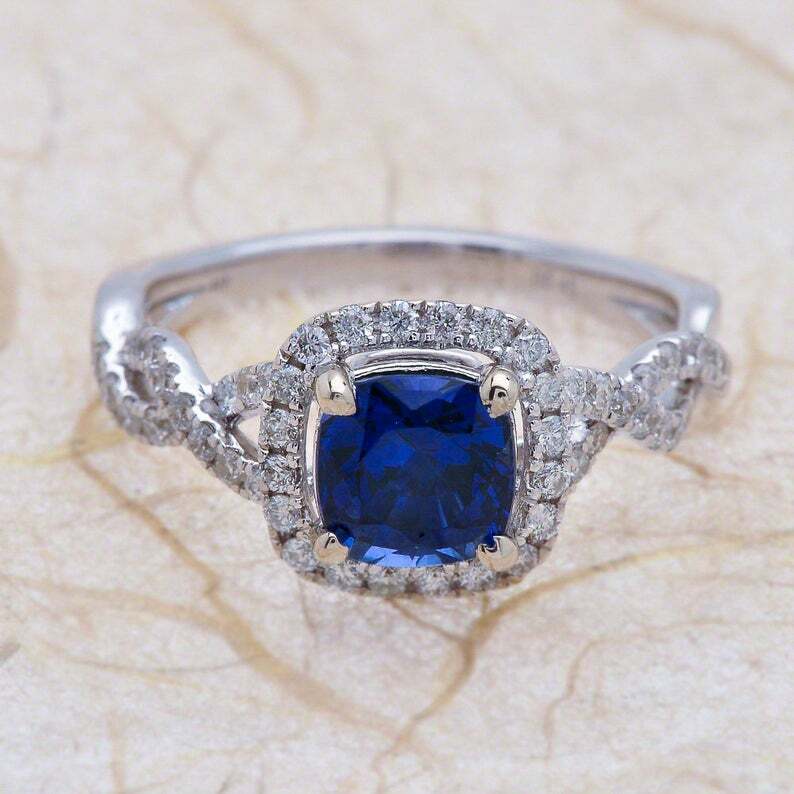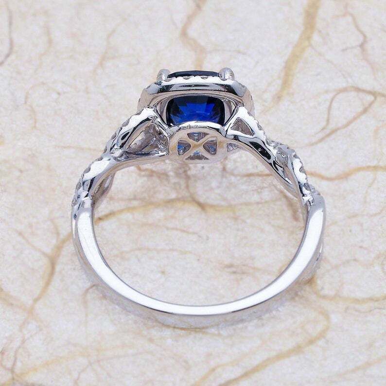 как выглядит 2.00CT Cushion Cut Blue Sapphire CZ Halo Women