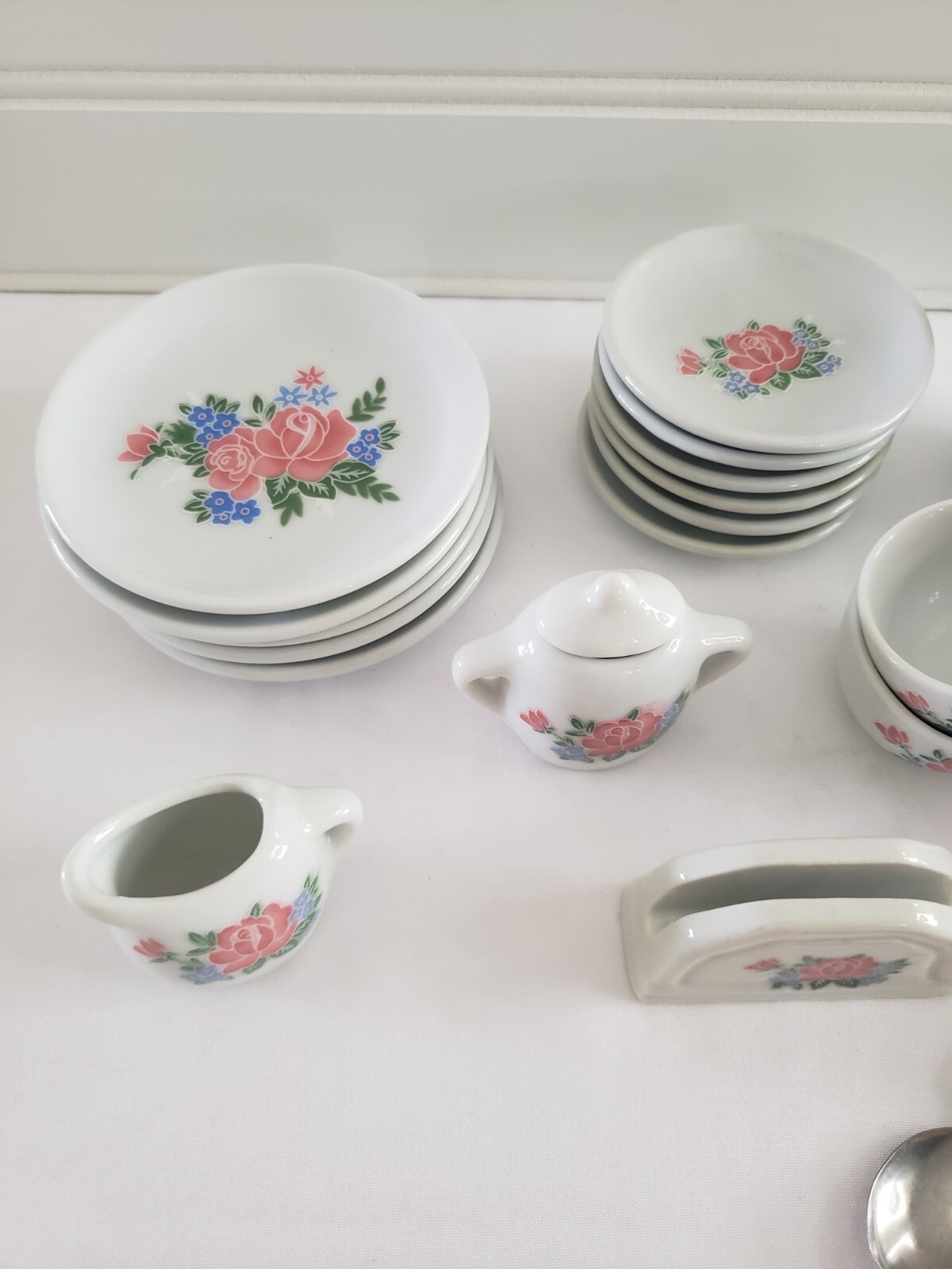 • Frenzy Toys 23 Piece Mini Porcelain Tea Set Floral Pink Blue Green White