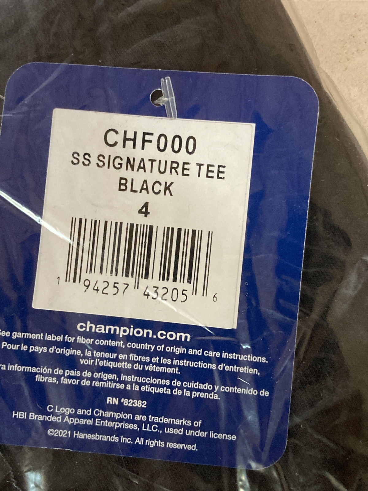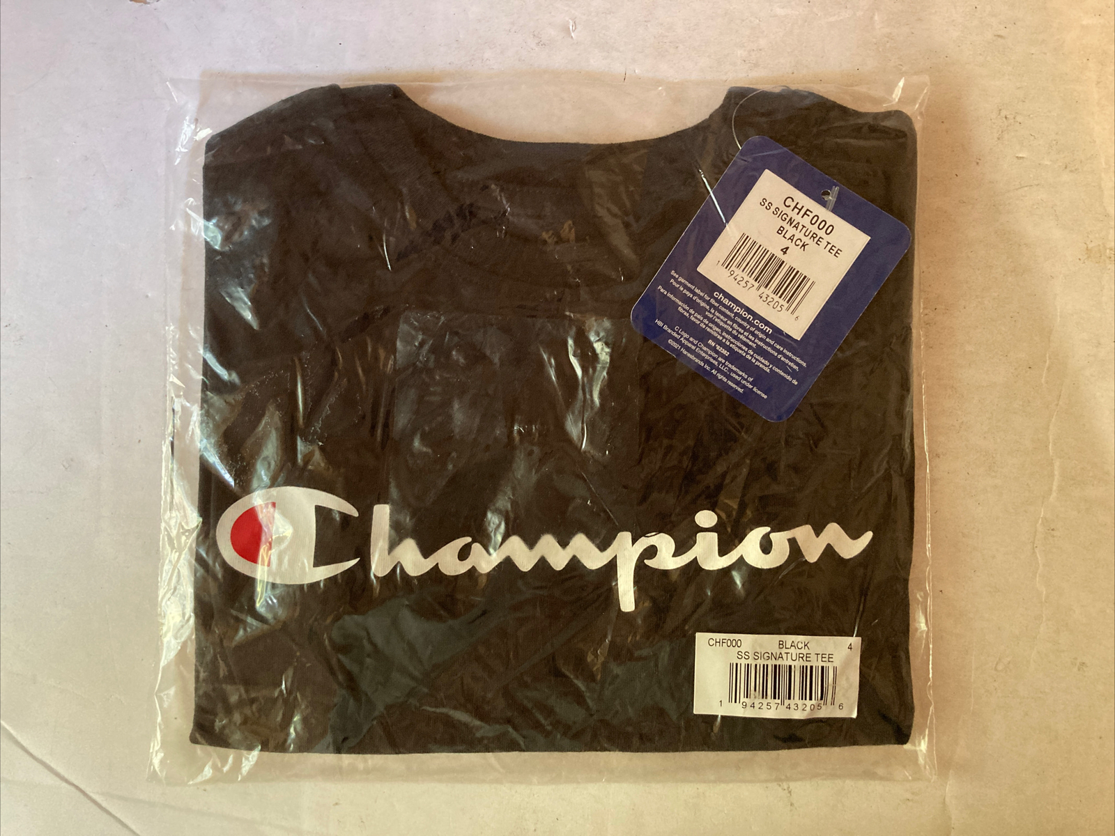 как выглядит Champion Boys Signature Logo T-Shirt, Black, Size 4 фото