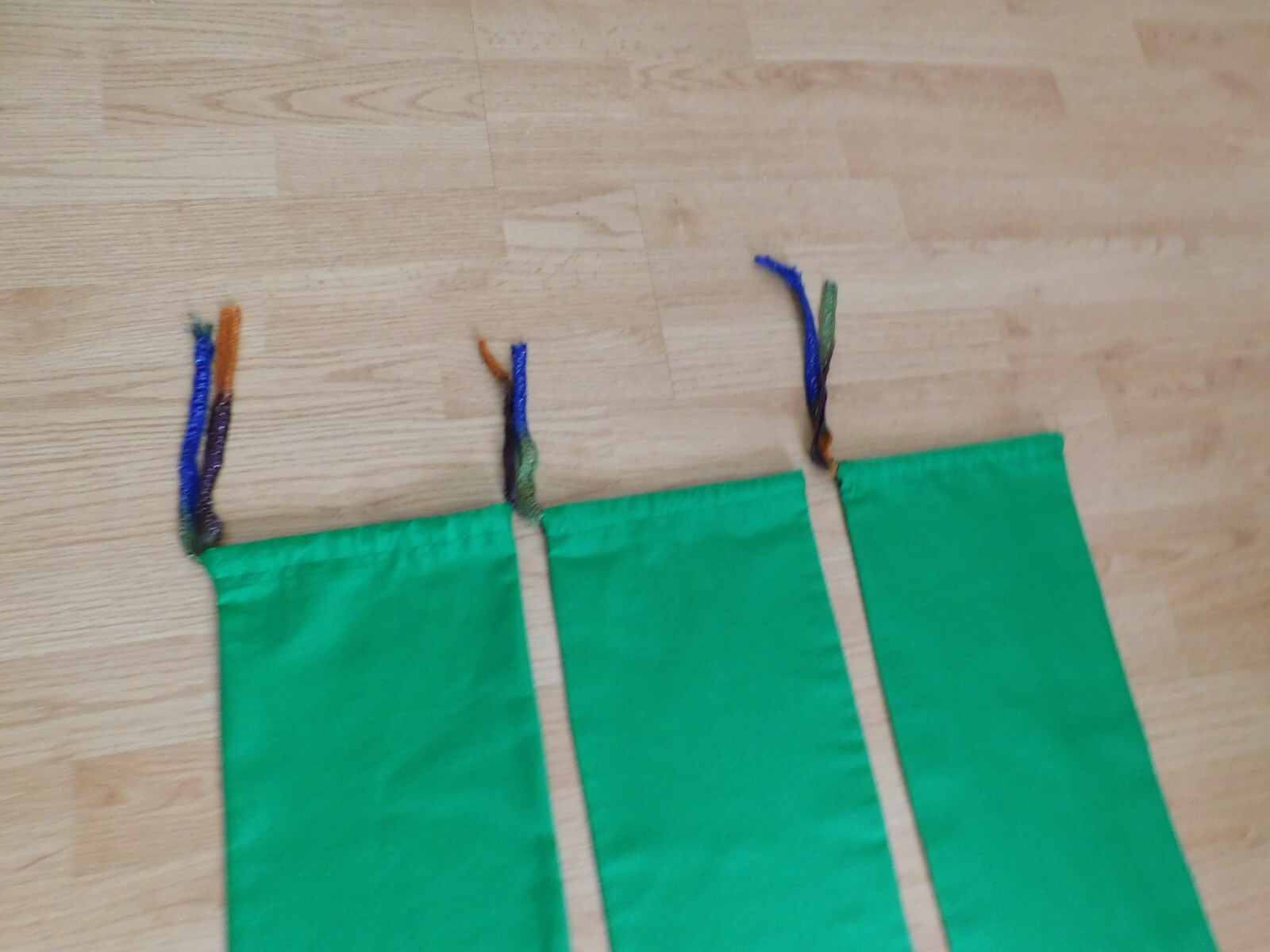 как выглядит 3 Cloth Gift Bags - Cotton - Medium - Green - Draw String - 21" x 7 3/4" - New фото