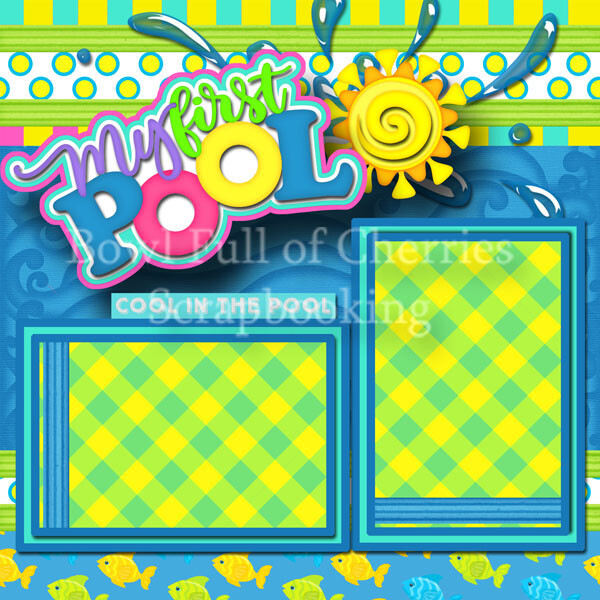 MY FIRST POOL 2 2 premade scrapbook pages BABY BOY paper 12X12 CHERRY 0302
