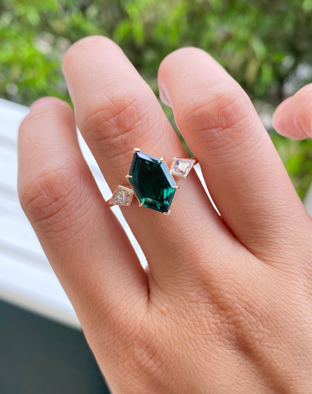 как выглядит Green Hexagon Cut Simulated CZ Solitaire 925 Sterling Silver Wedding Gift Ring фото