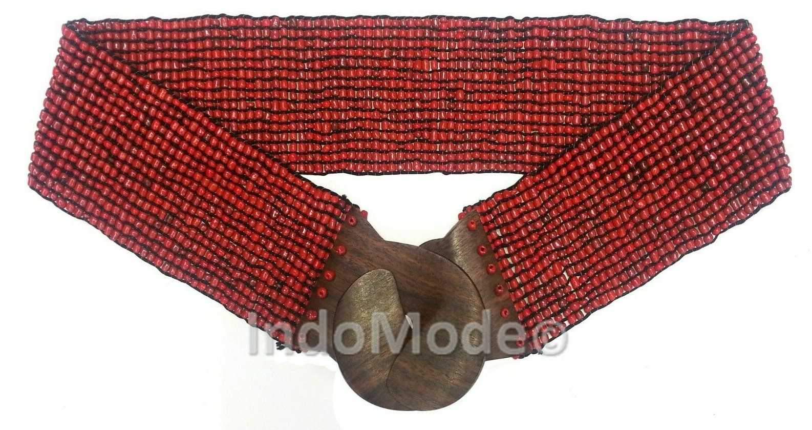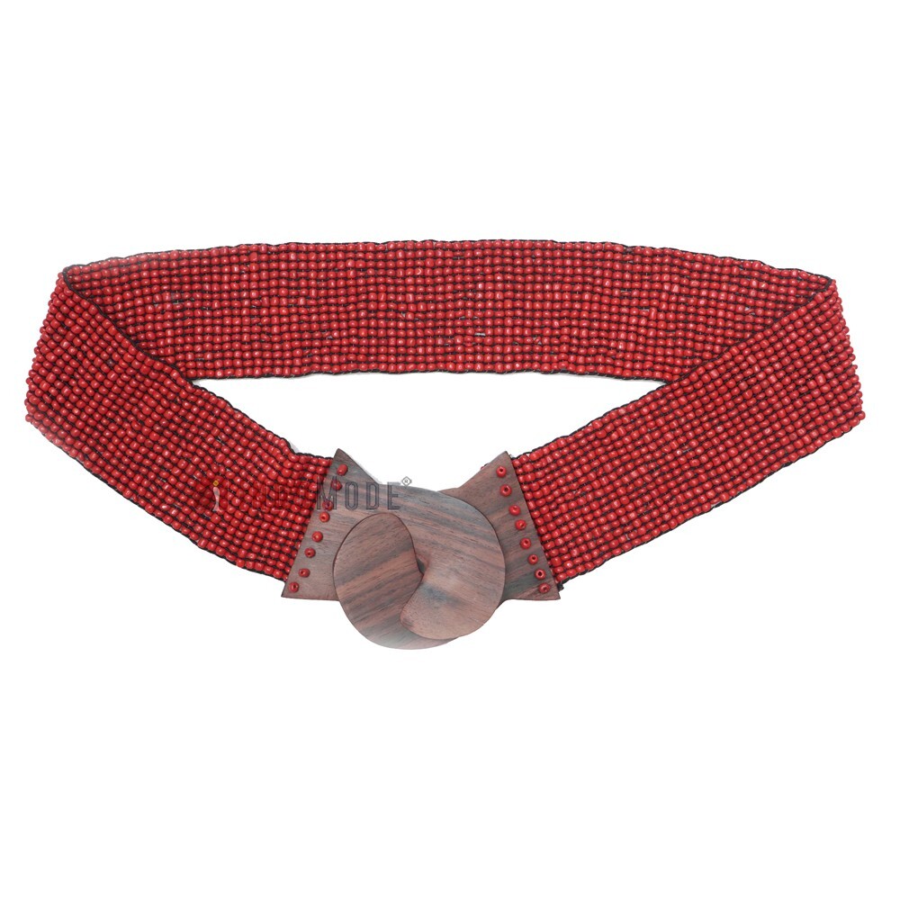 как выглядит Red Womens Fashion Belt from BALI 2-inch Wide Elastic Glass Beads Wood Buckle фото