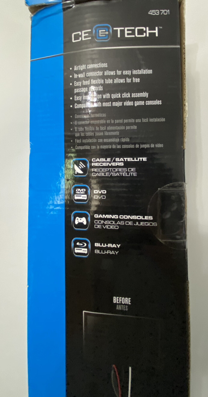CE TECH flat screen tv in-wall cover and power kit 453701 easy installation new