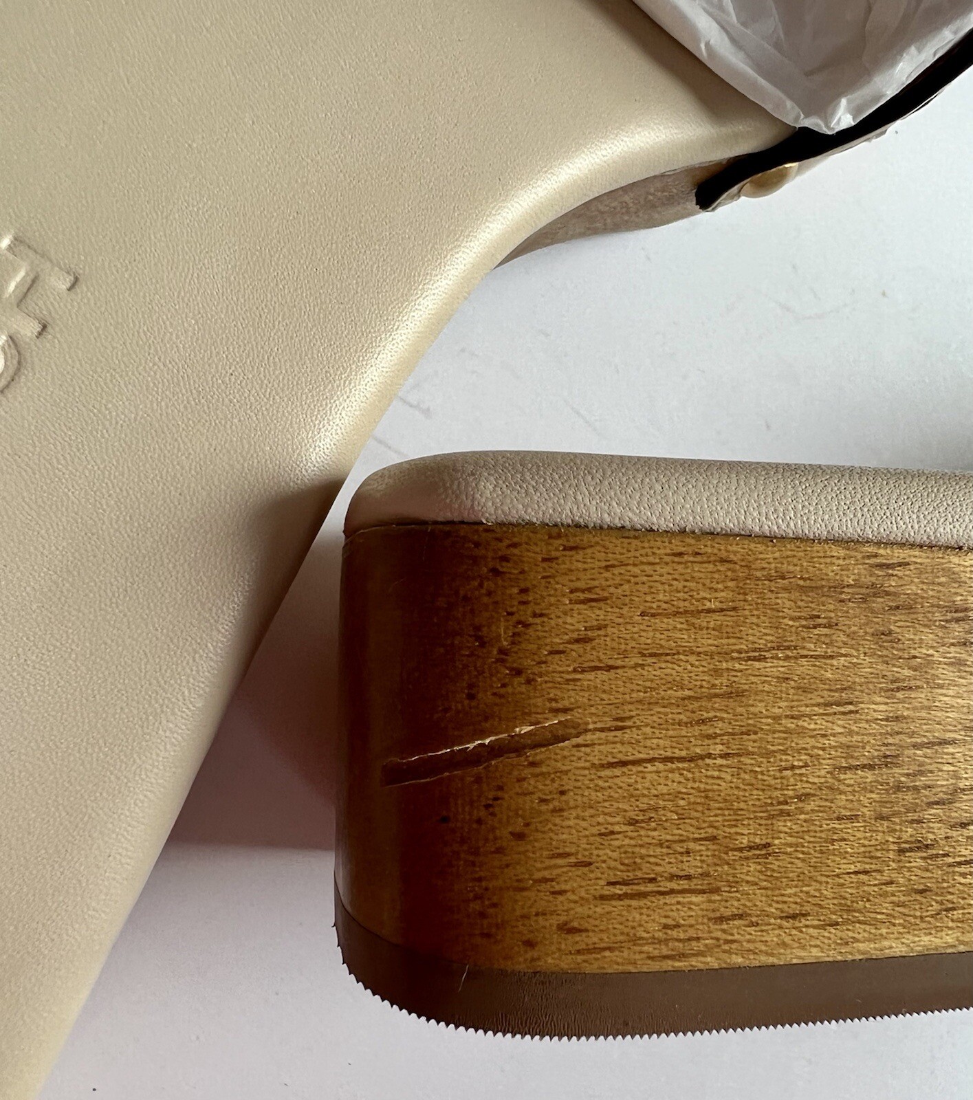 как выглядит Tory Burch 298 Basket Weave Leather Open-Toe Clogs Sandals New Cream US 9.5 M фото