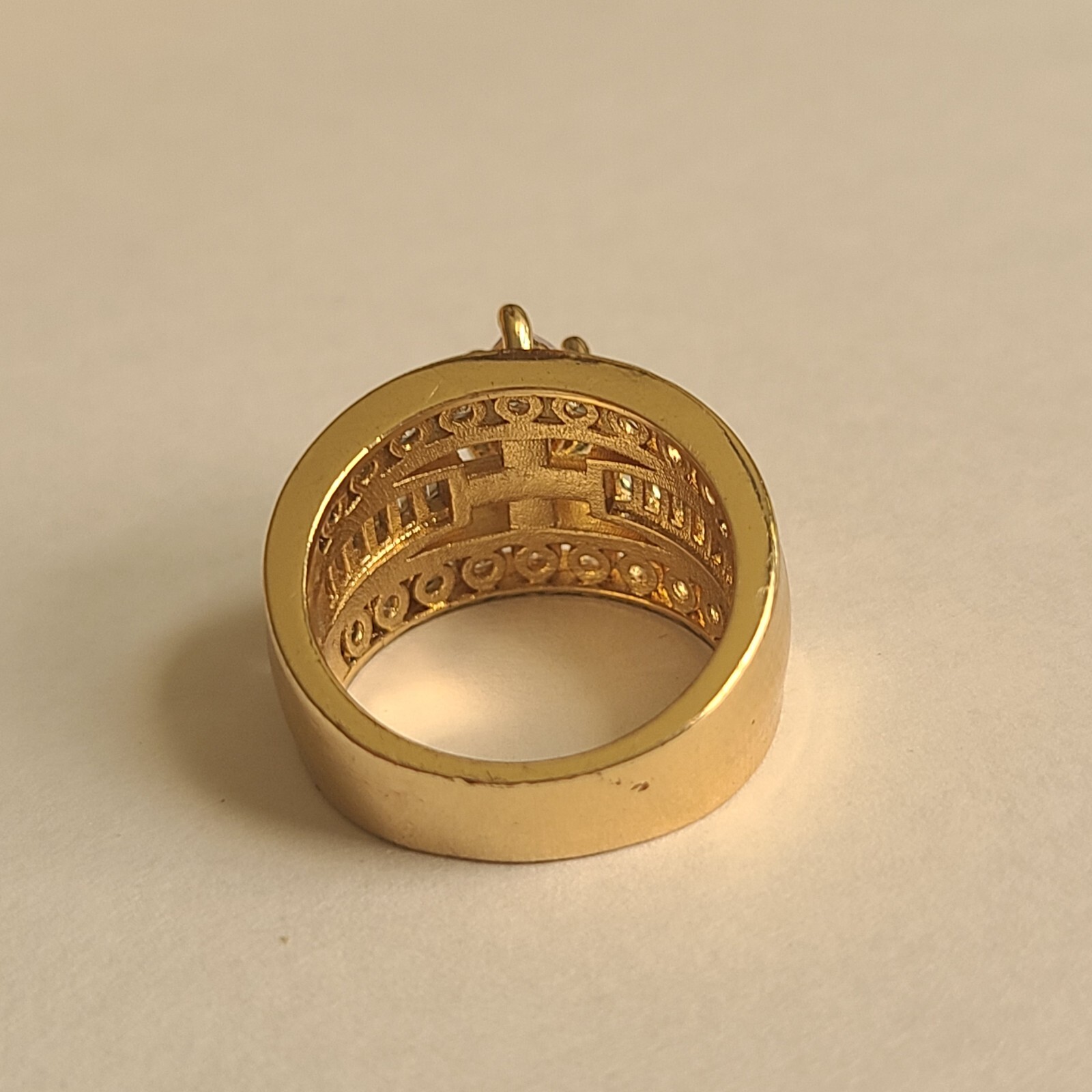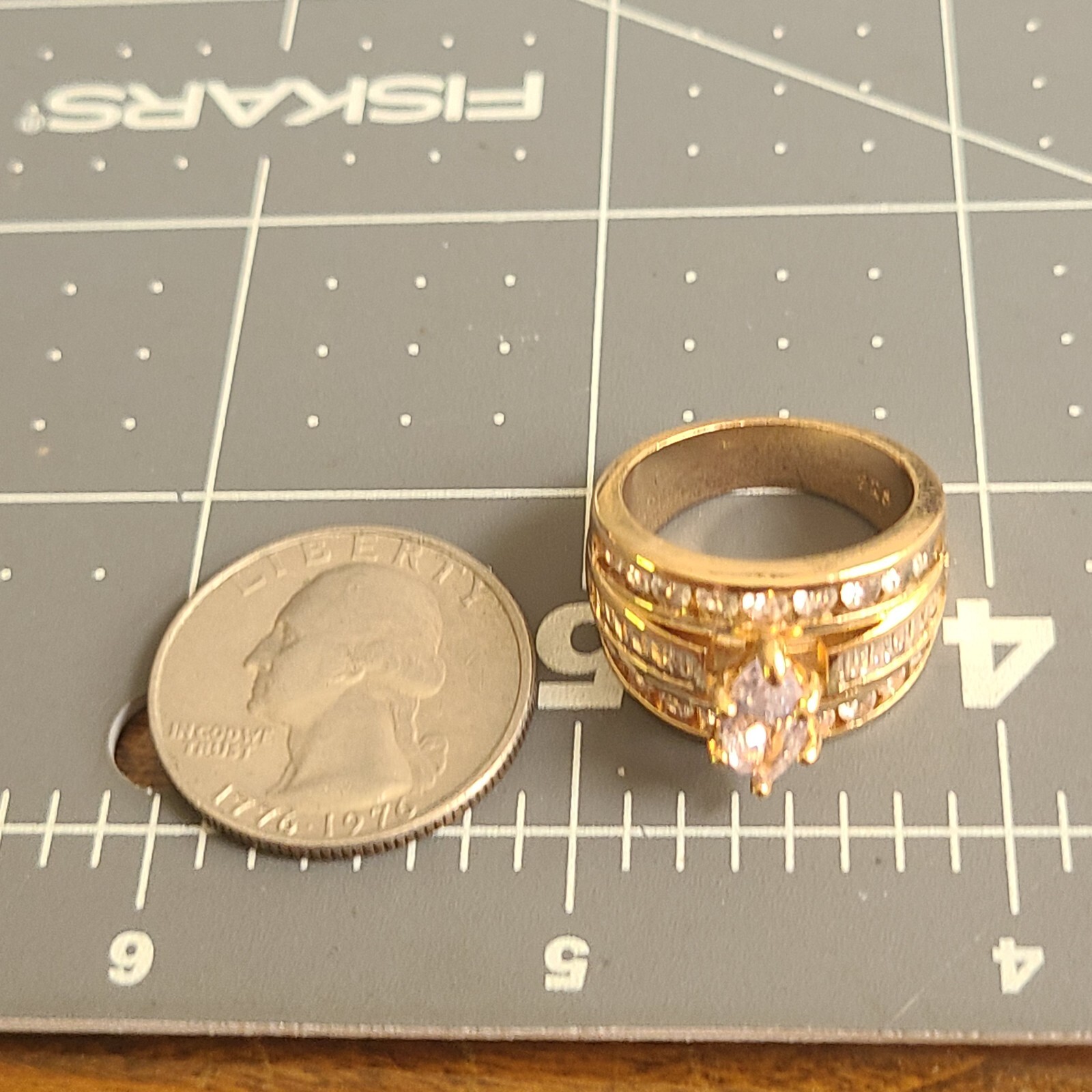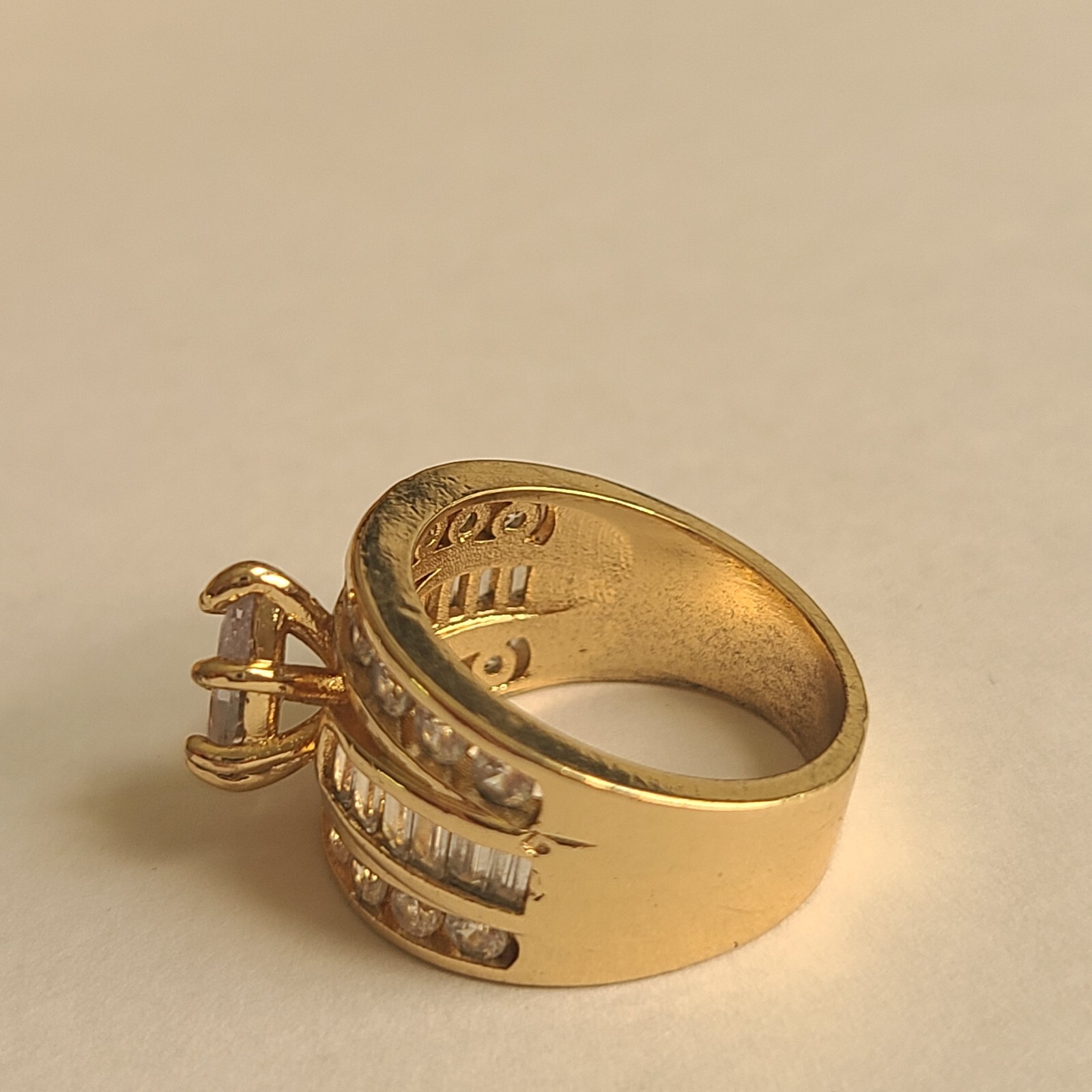 как выглядит VINTAGE GOLD ON STERLING SILVER WHITE STONES LARGE RING SZ 6.75 VERMEIL фото