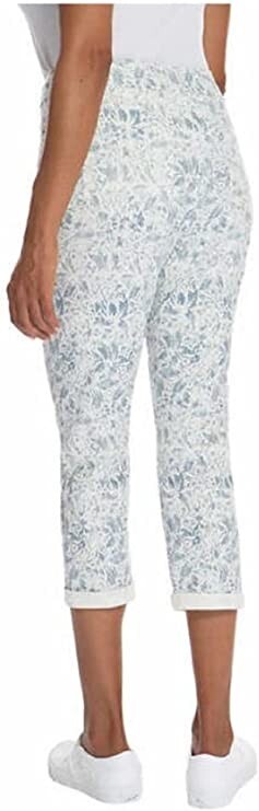 как выглядит NWT Mario Serrani Stretch Capri Pant Elastic Waist Blue Floral Size S 55 1B097 фото