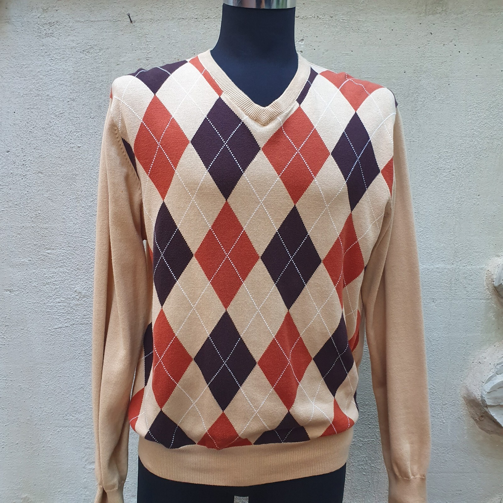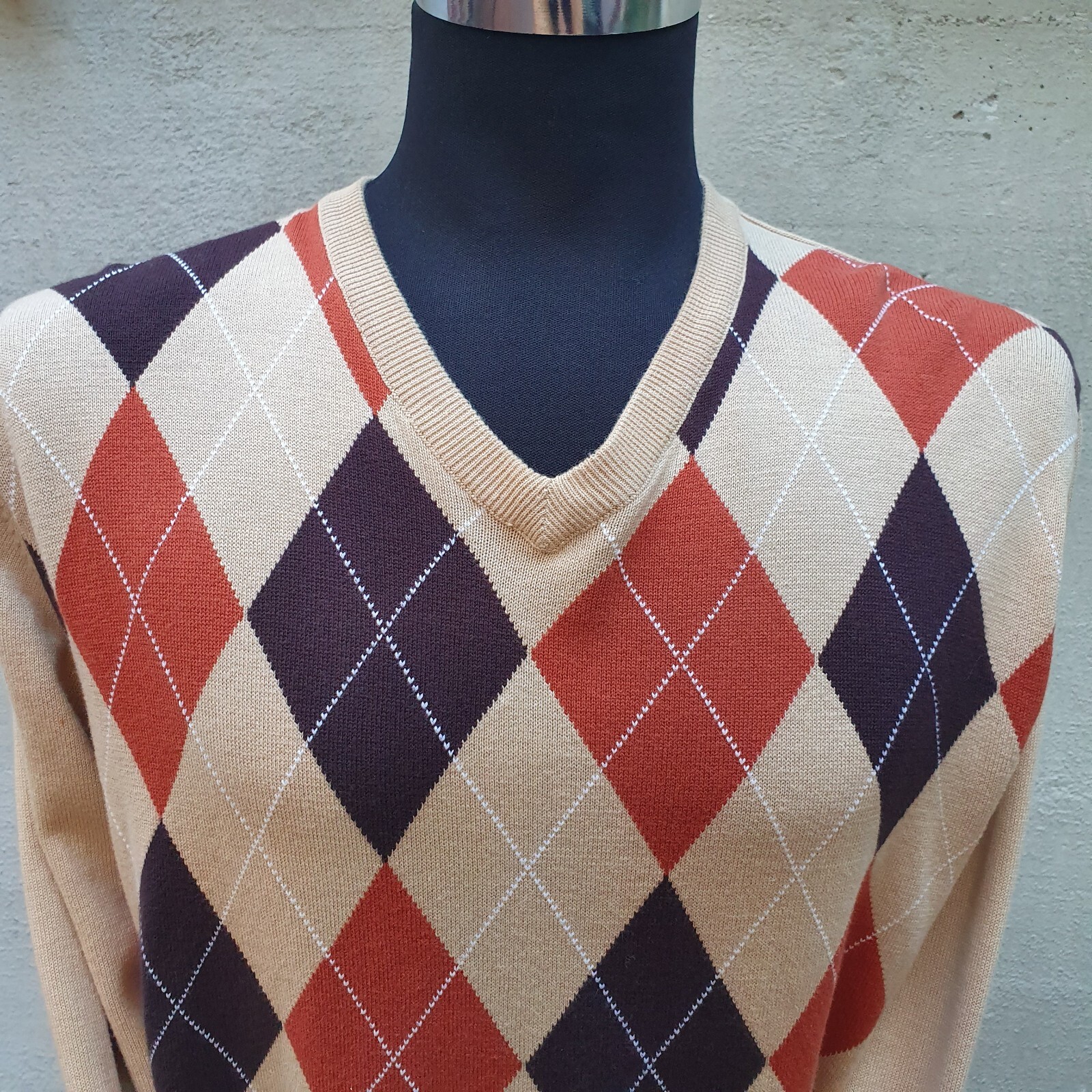 как выглядит Mens 100 Cotton Beige Rhombus Orange Brown Sweater Sweater XL фото