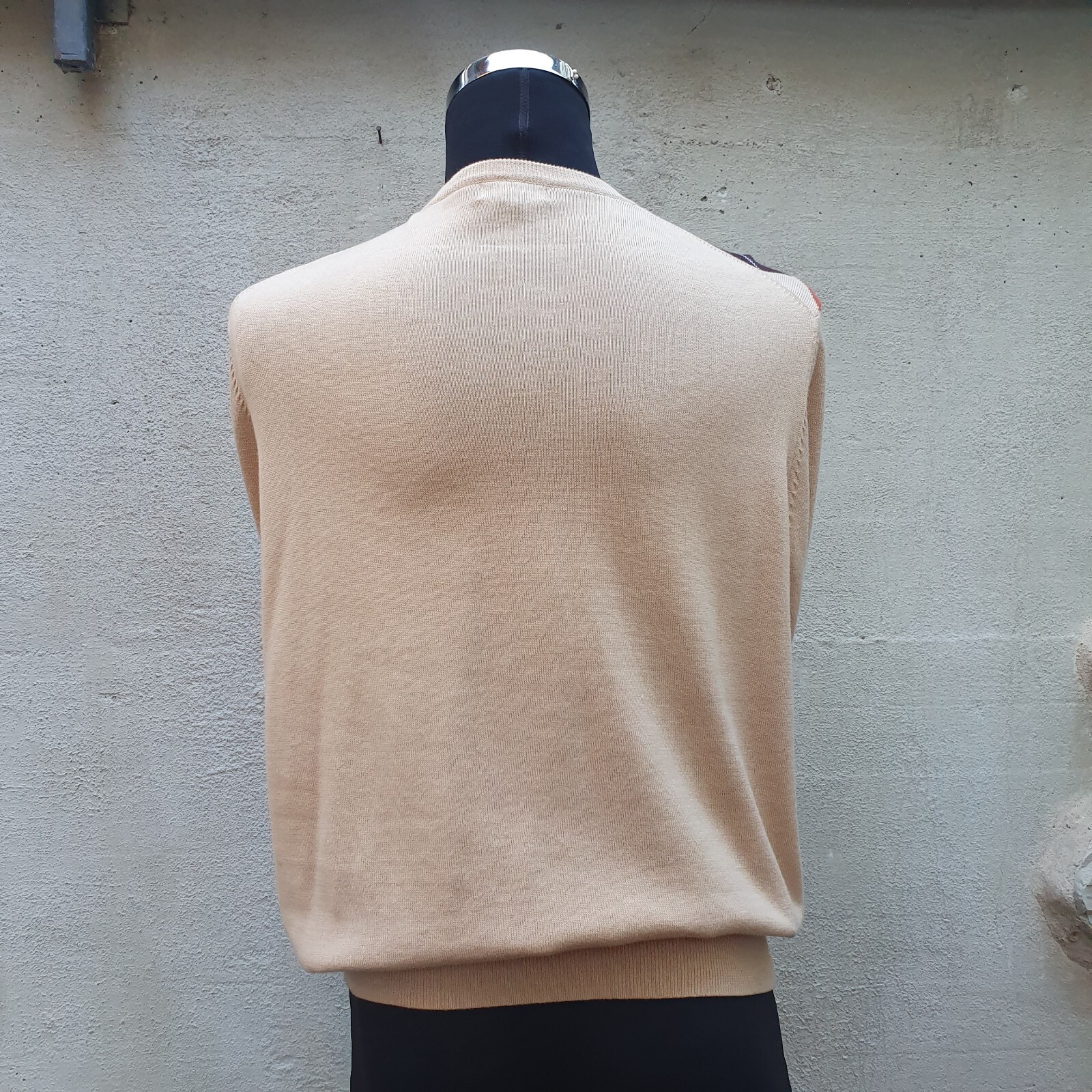 Men's 100 Cotton Beige Rhombus Orange Brown Sweater Sweater XL
