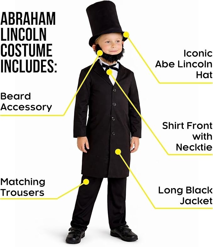 Boys Abraham Lincoln Costume Hat Kids USA President Outfit Halloween