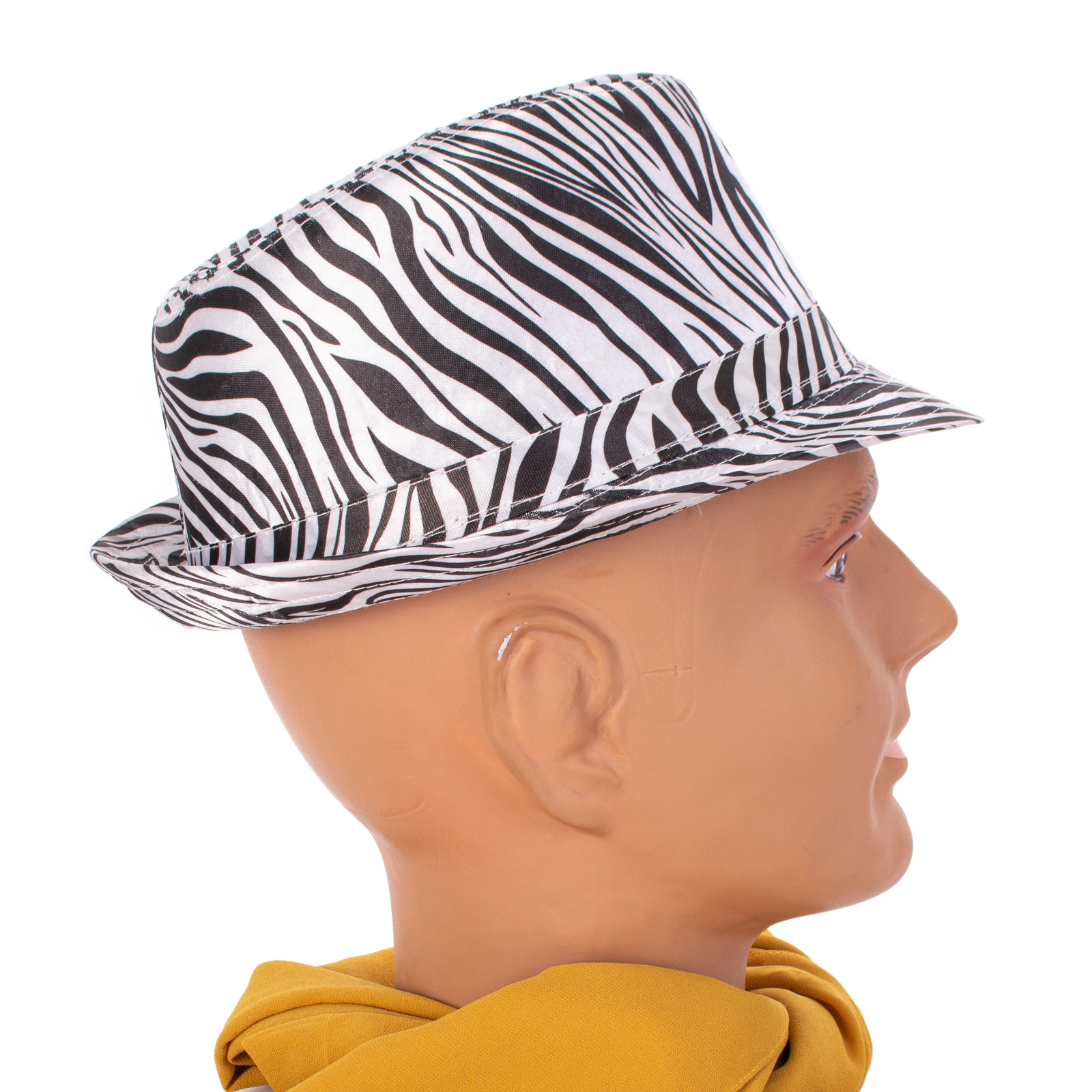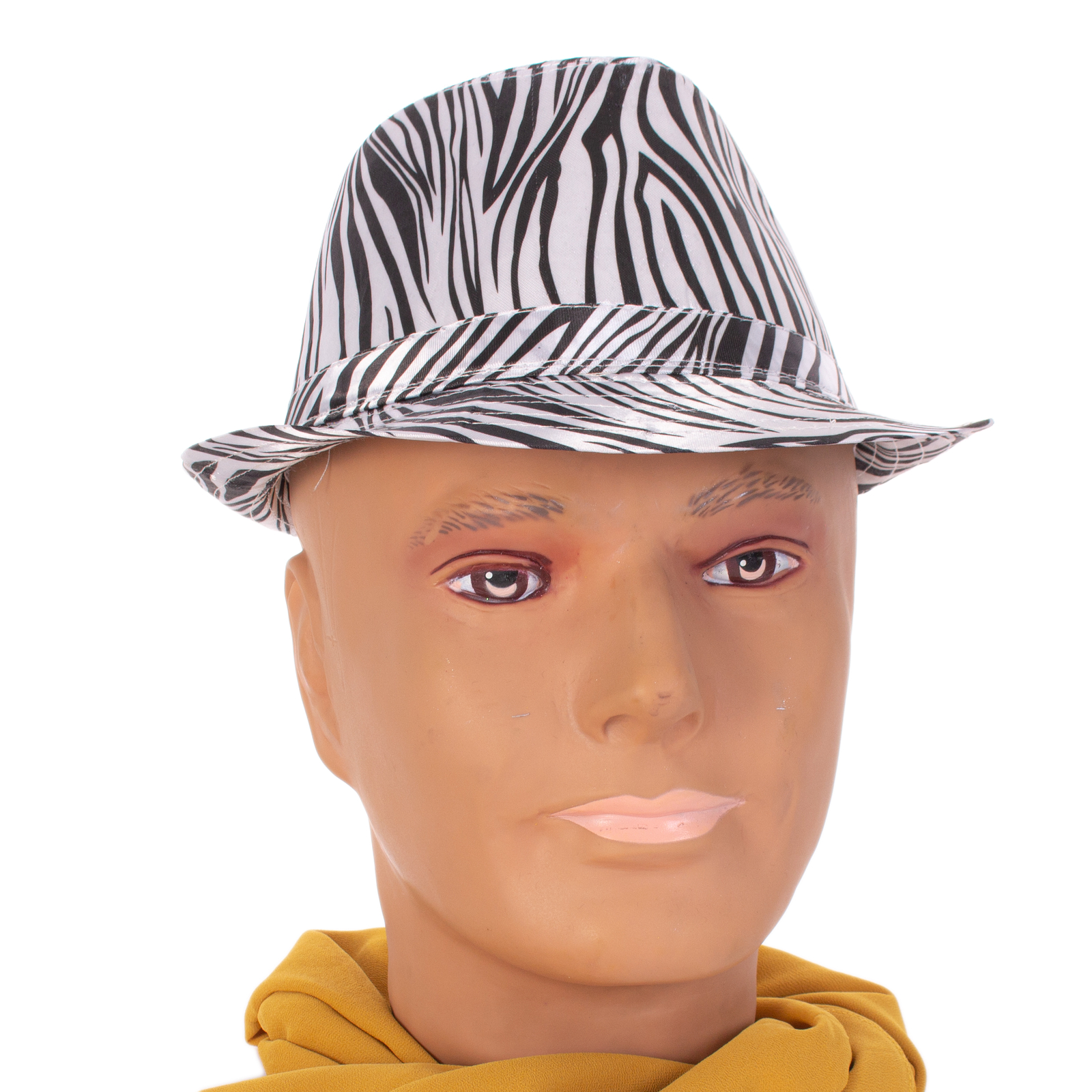 1920s Gangster Mob Boss Costume Zebra Print Fedora, White Black, One-Size