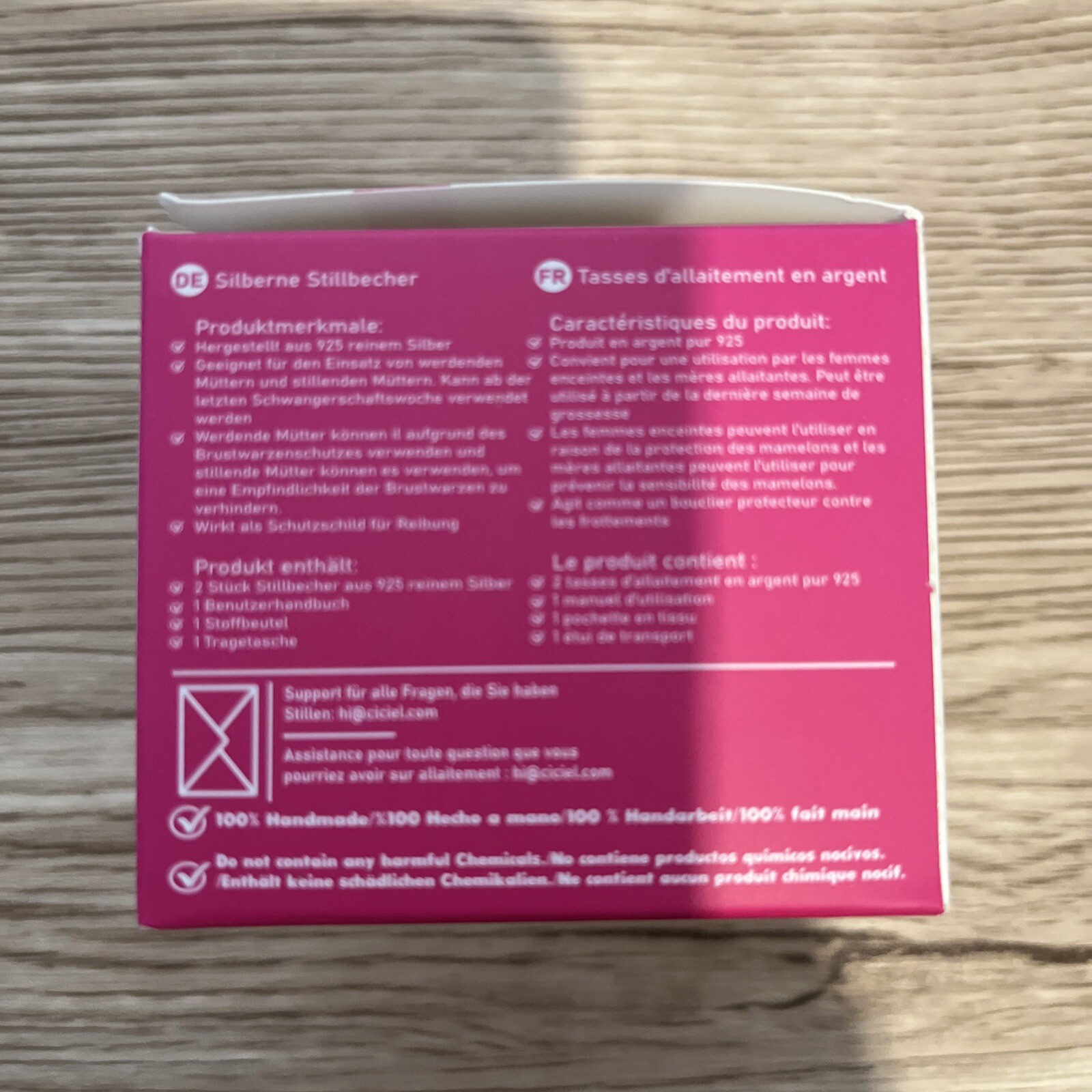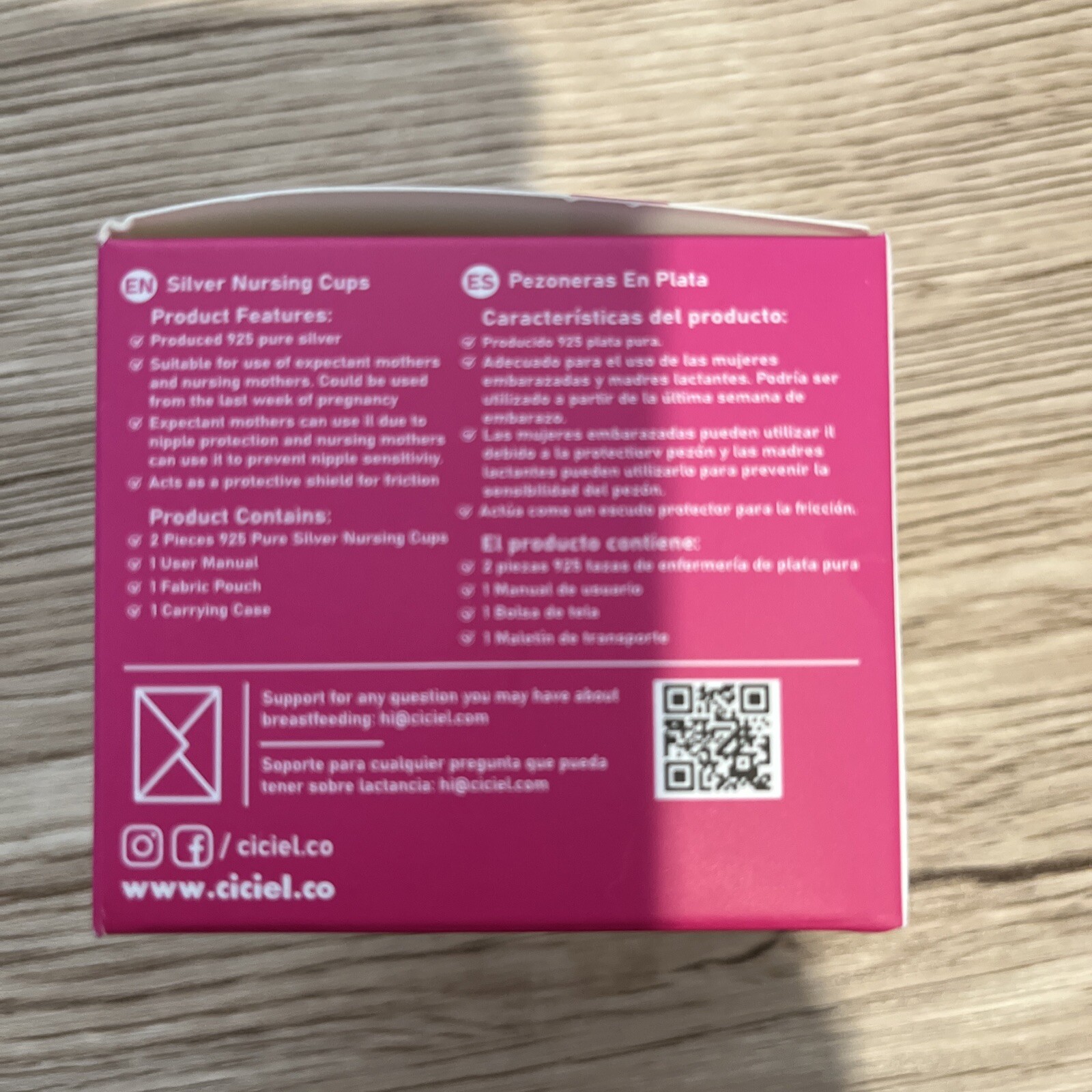 Ciciel Silver Nursing Cups W Pink Case NEW