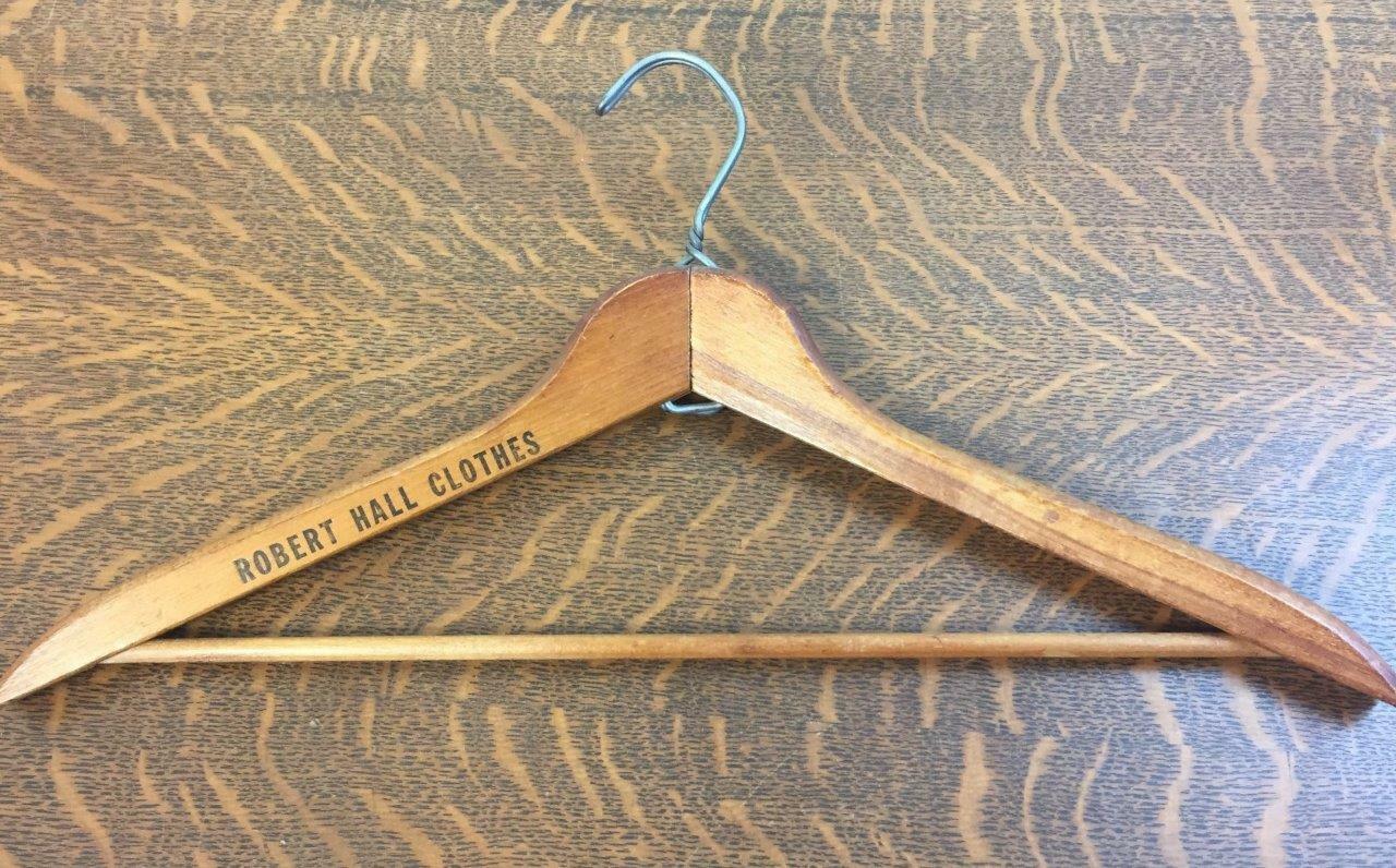 Antique Vintage ROBERT HALL CLOTHES Wooden Clothes Hanger Clothing Advertising