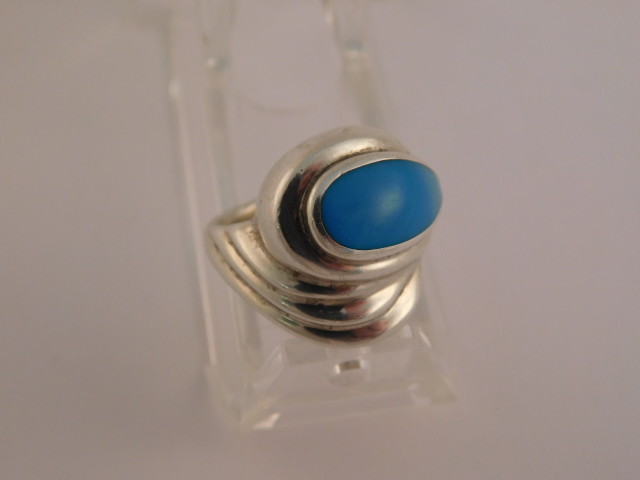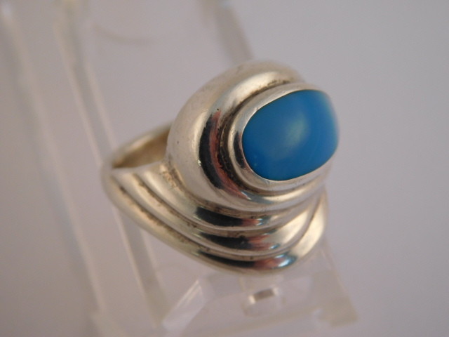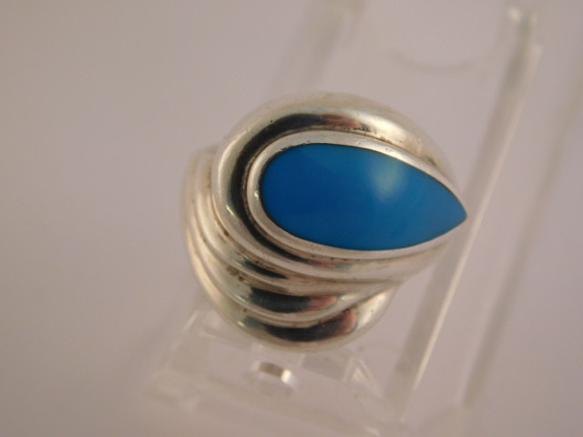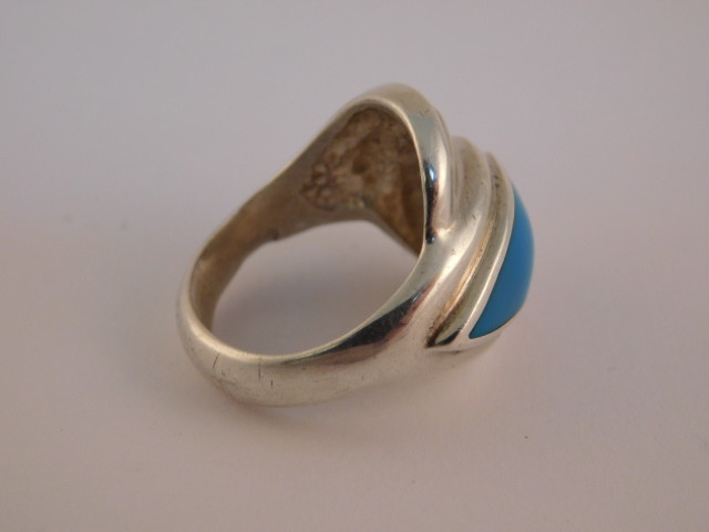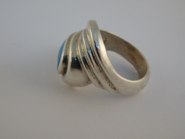 как выглядит STERLING SILVER TURQUOISE RING HALLMARKED M BLUE WRAP SIZE 7.25 WIDE фото